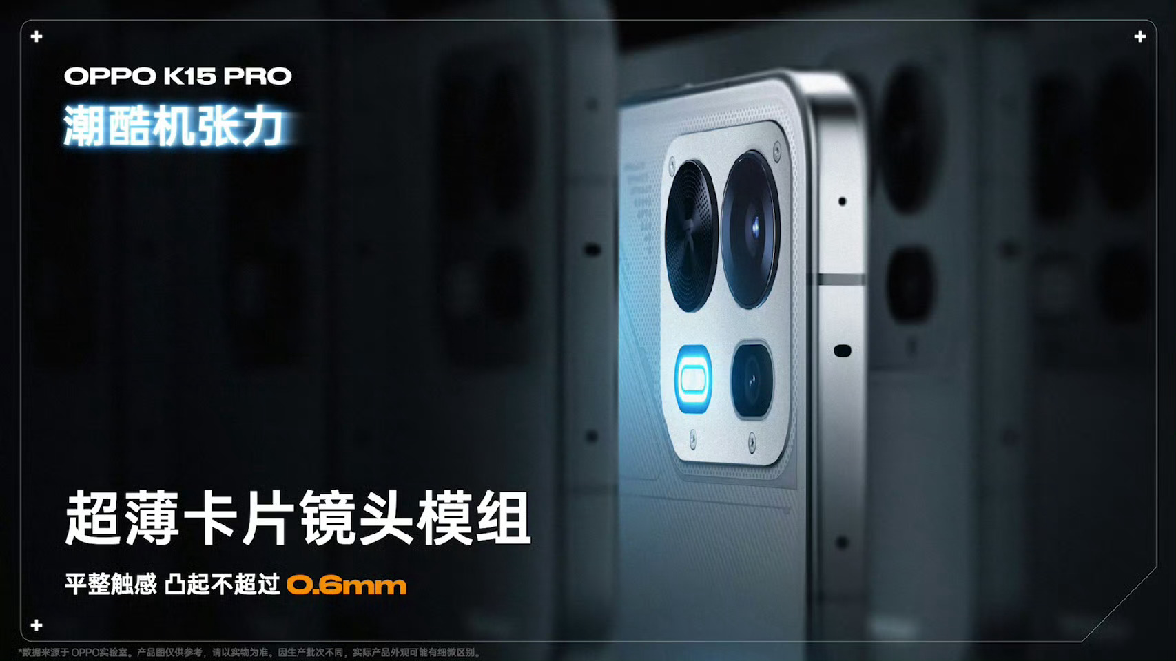 OPPO K15 Pro 系列有赛博光翼、光尘粉、起源灰三款配色,镜头模组最高凸起仅0.6毫米,6.59英寸的黄金尺寸,而且给到了金属中框,手感真的不错! 酒泉
