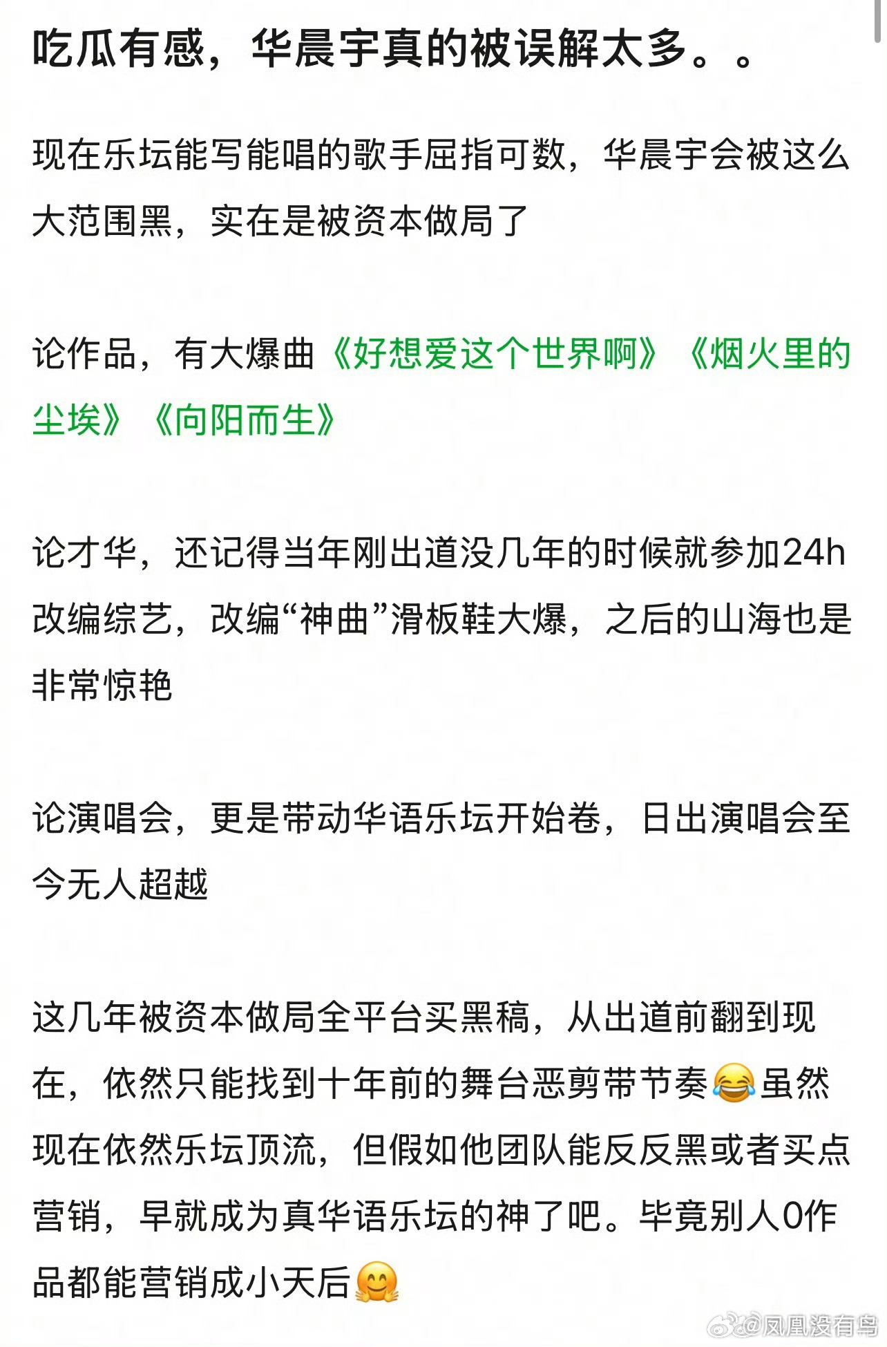 其实华晨宇真的是少有的创作型歌手来着