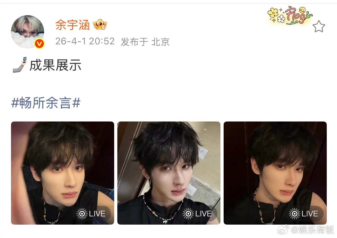 余宇涵演老实人骗人余宇涵自拍成果展示 余宇涵发完假的自拍后马上发了真的自拍, 想过愚人节又舍不得粉丝真失望,这就是老实人“骗人”的样子吗余宇涵