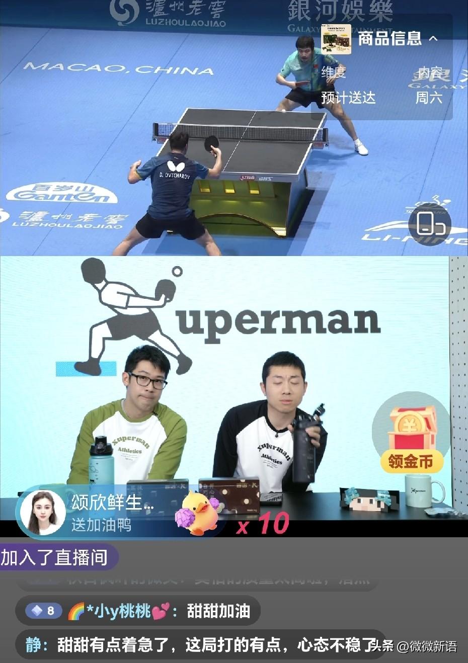 许昕在直播间里也是干着急啊。 第一局第二局梁靖崑打的可以,但是大家就怕他前面两局赢,果不其然又打到决胜局了,比赛打到2平,奥恰就晋级了,所以梁靖崑直接小组赛出不了线,许昕在直播间里也是着急的,志强教练在场外肯定也着急了。许昕说第五局就放开了打吧,他对奥恰还是比较了解。 许昕说第五局如果梁靖崑赢了,还是值得敬佩的,知道自己出不了线,还能认真对待比赛,决胜局梁靖崑比分领先,奥恰现在知道自己能出线了,所以打的也比较释放。看到有人在直播间里说叫马龙回来,许昕说要是能回来那不就回来了嘛,奥恰在职业生涯里确实一次也没有赢过马龙,马龙是最会打奥恰的。 许昕说梁靖崑出不线还在场上拼,直播间里咋就开始吵起来了,不过最后一个球梁靖崑又是发球犯规,奥恰得分,奥恰3-2赢了梁靖崑。志强教练看着甜甜也很无奈,不过确实梁靖崑也是有伤,打不出之前那样高质量的球,这次澳门世界杯梁靖崑小组赛出不了线,估计伦敦世乒赛也不会有他的名额了,接下来好好养伤,把身体养好。