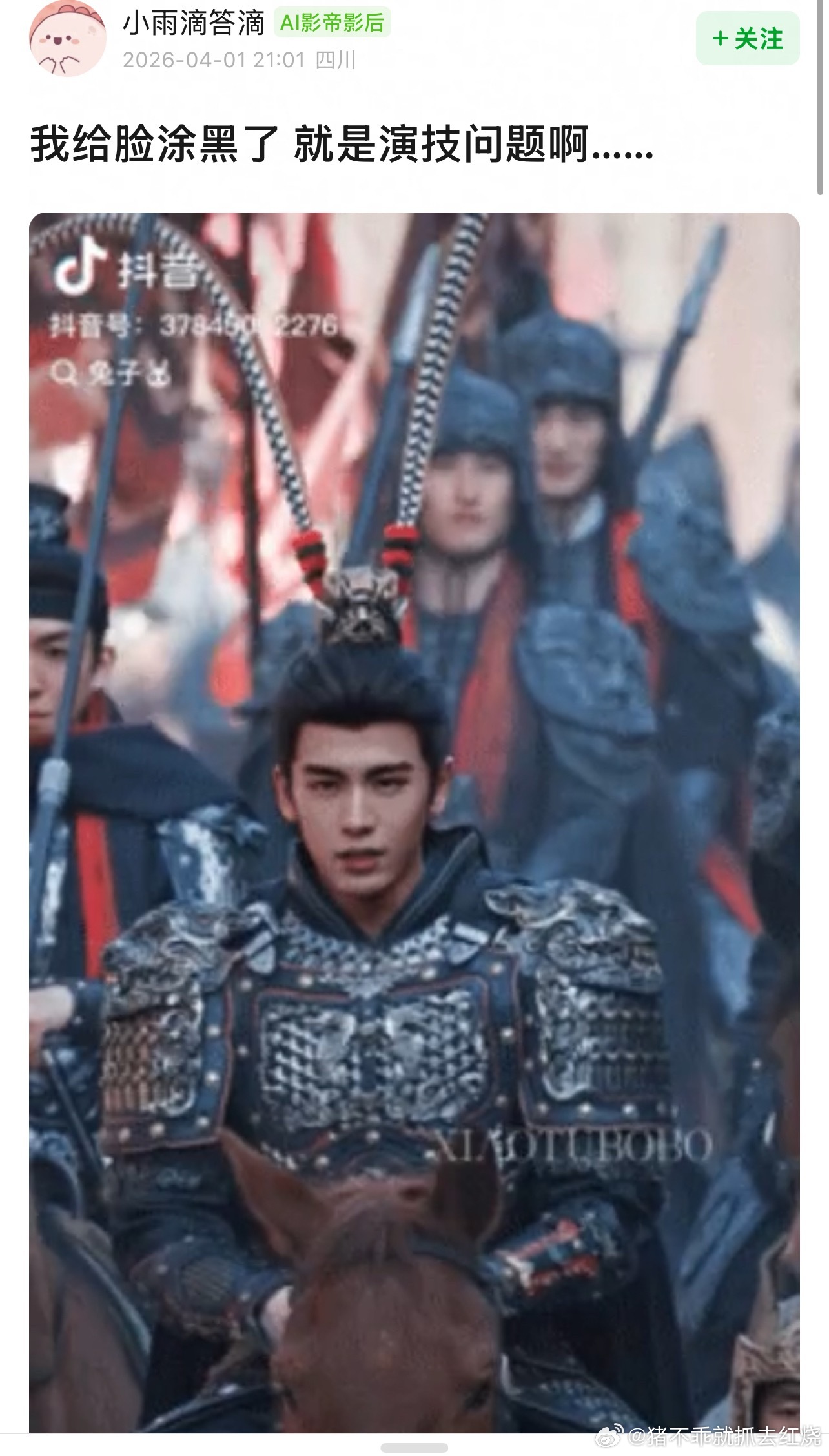 把脸涂黑后看出,确实是演技问题演成了摇头晃脑小人得志