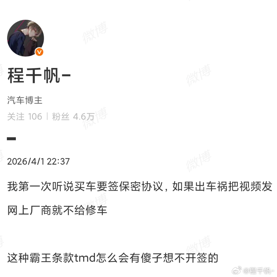 因为拍个视频大概率要发抖音,买车签的那个协议要求不能有负面新闻