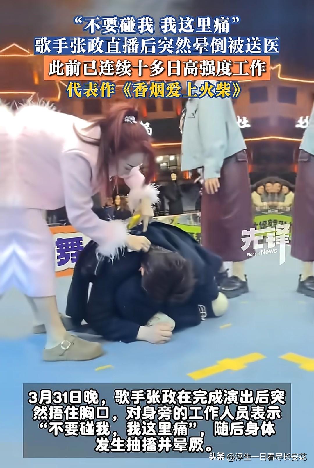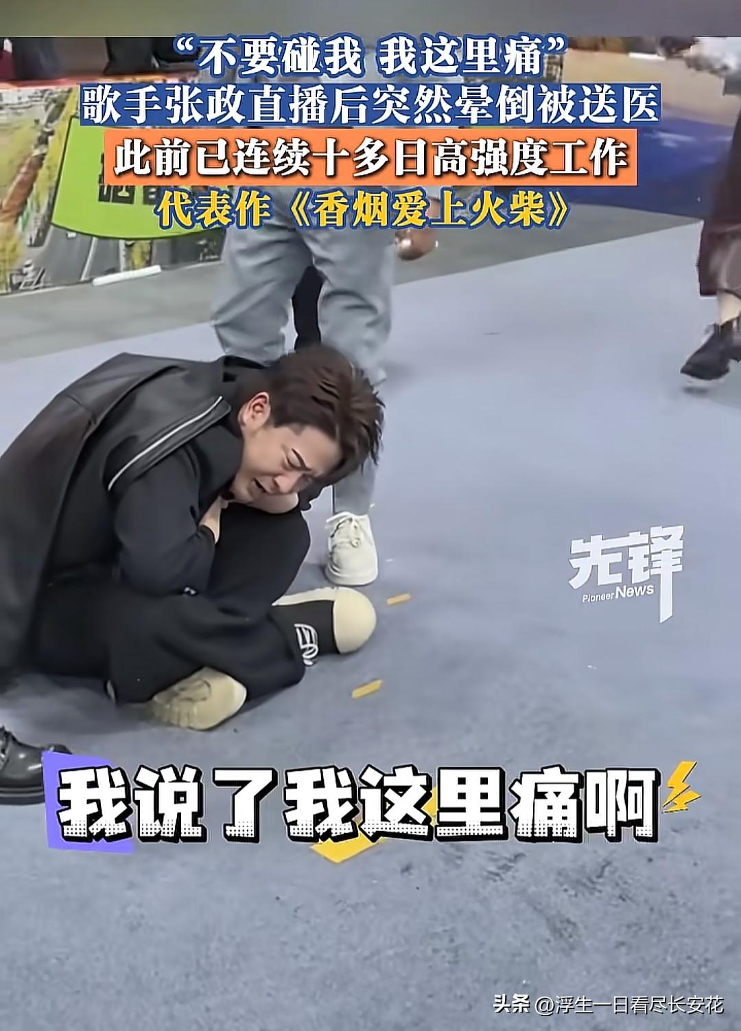 钱是挣不完的,身体要紧,大家都别太累了。 3月31日晚,歌手张政在湖北恩施“硒都大舞台”直播结束后,突然捂住胸口大喊“不要碰我,我这里痛”,随后抽搐晕倒,被紧急送往医院救治。据了解,张政此前已连续十多日高强度工作,日夜筹备舞台彩排和深夜直播,导致体力严重透支。好在经过紧急医疗处置,张政目前已恢复意识,还问护士“为什么吊瓶滴得好慢”。 张政的经历,让很多人联想到了张雪峰老师。张雪峰老师因为高强度工作,身体出现了问题,不得不暂时离开工作岗位。这两件事都给我们敲响了警钟:挣钱是为了养命,命都没有保障,挣钱干什么? 在这个快节奏的社会里,很多人都像张政和张雪峰一样,为了工作拼命透支自己的身体。他们每天加班加点,熬夜工作,忽略了自己的健康。但他们不知道,身体是革命的本钱,没有了健康,一切都无从谈起。 很多人为了升职加薪,每天加班到深夜,周末也不休息。结果不到一年,就因为过度劳累患上了严重的胃病,不得不请假住院治疗。不仅工作没了,还花了不少钱看病。都知道健康才是最重要的,为什么都被忽视了呢?说白了,还是生活节奏快、竞争激烈、压力大造成的,谁都不想停下来。 所以,我想对大家说,钱是挣不完的,身体要紧,别太累了。在努力工作的同时,也要注意休息,照顾好自己的身体。只有拥有健康的身体,才能更好地工作和生活。 对此,大家怎么看呢?欢迎留言。