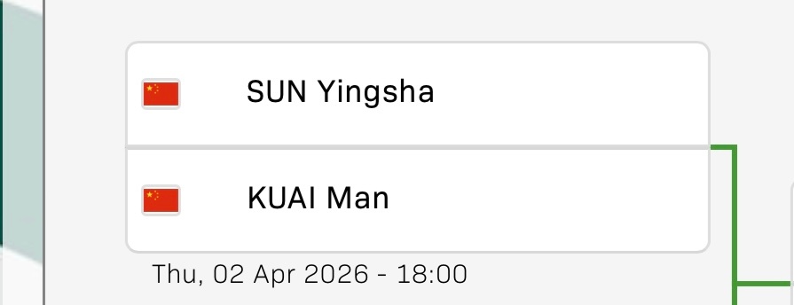 孙颖莎 王楚钦2026澳门乒乓球世界杯 20260401|澳门世界杯赛程4月2日 T1 18:00孙颖莎🇨🇳VS蒯曼🇨🇳4月3日T1 18:45王楚钦🇨🇳VS费利克斯·勒布伦🇫🇷