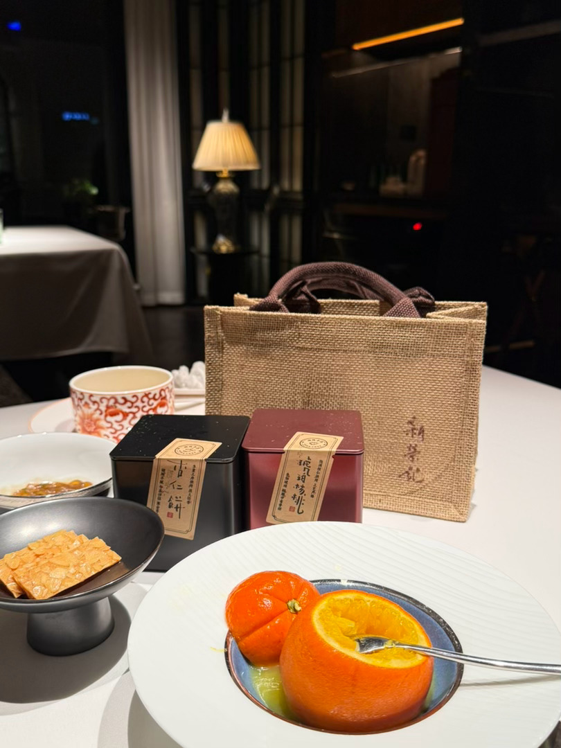成都新荣记|这两天翻相册翻到之前去成都旅游的库存提前预约了新荣记餐厅 到店会分配管家菜品的话推荐带鱼 生蚝焖饭和红薯~会提前给你展示食材介绍菜品 菜品的味道都很好服务也很体贴 那几天有一点感冒 咳嗽了几声服务员变送上来了一份润喉的蒸橙🍊还送了伴手礼~去成都玩的宝宝可以去品尝一下