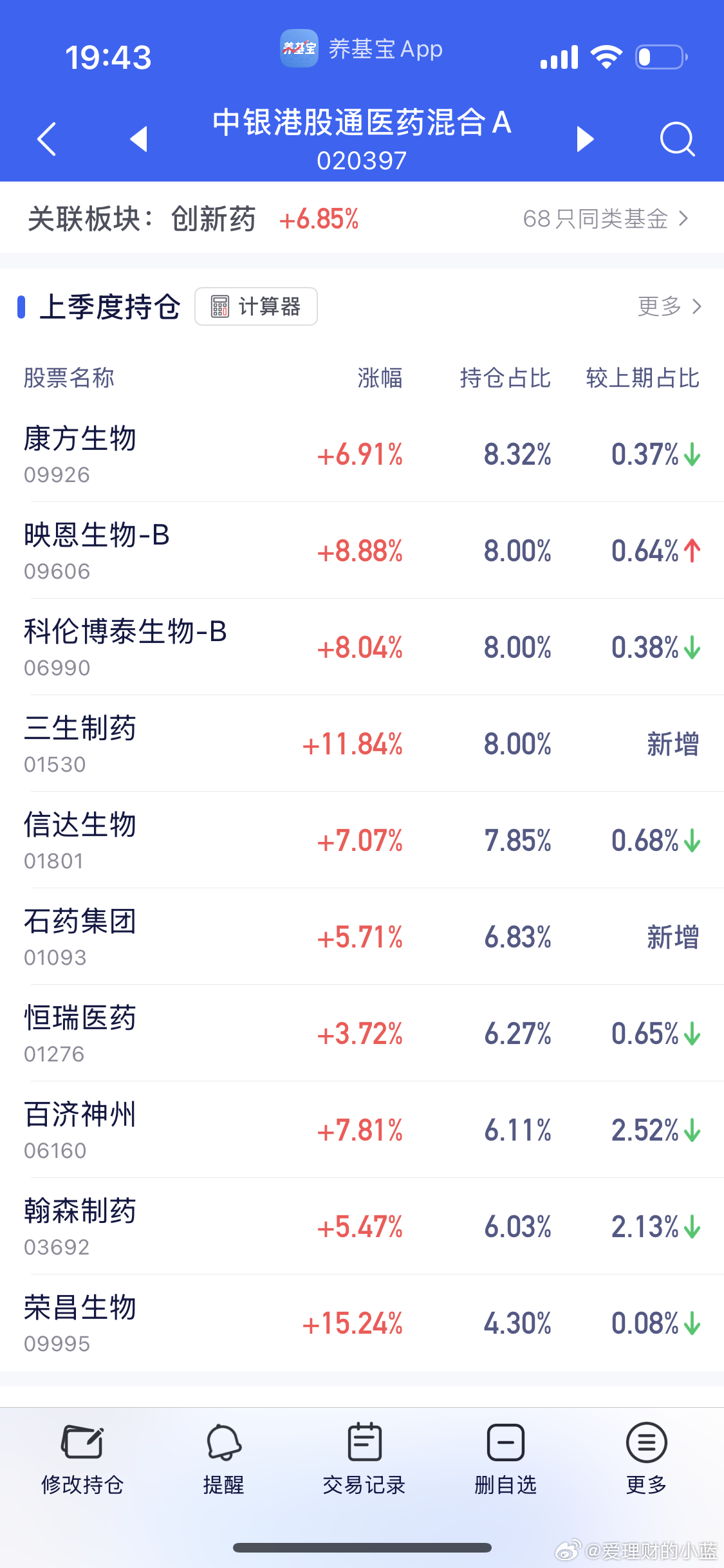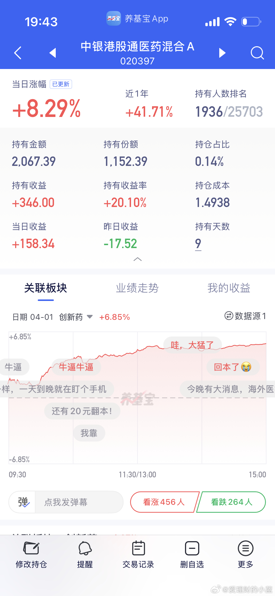 港股创新药8.29如果我没卖今天基金收益12w。