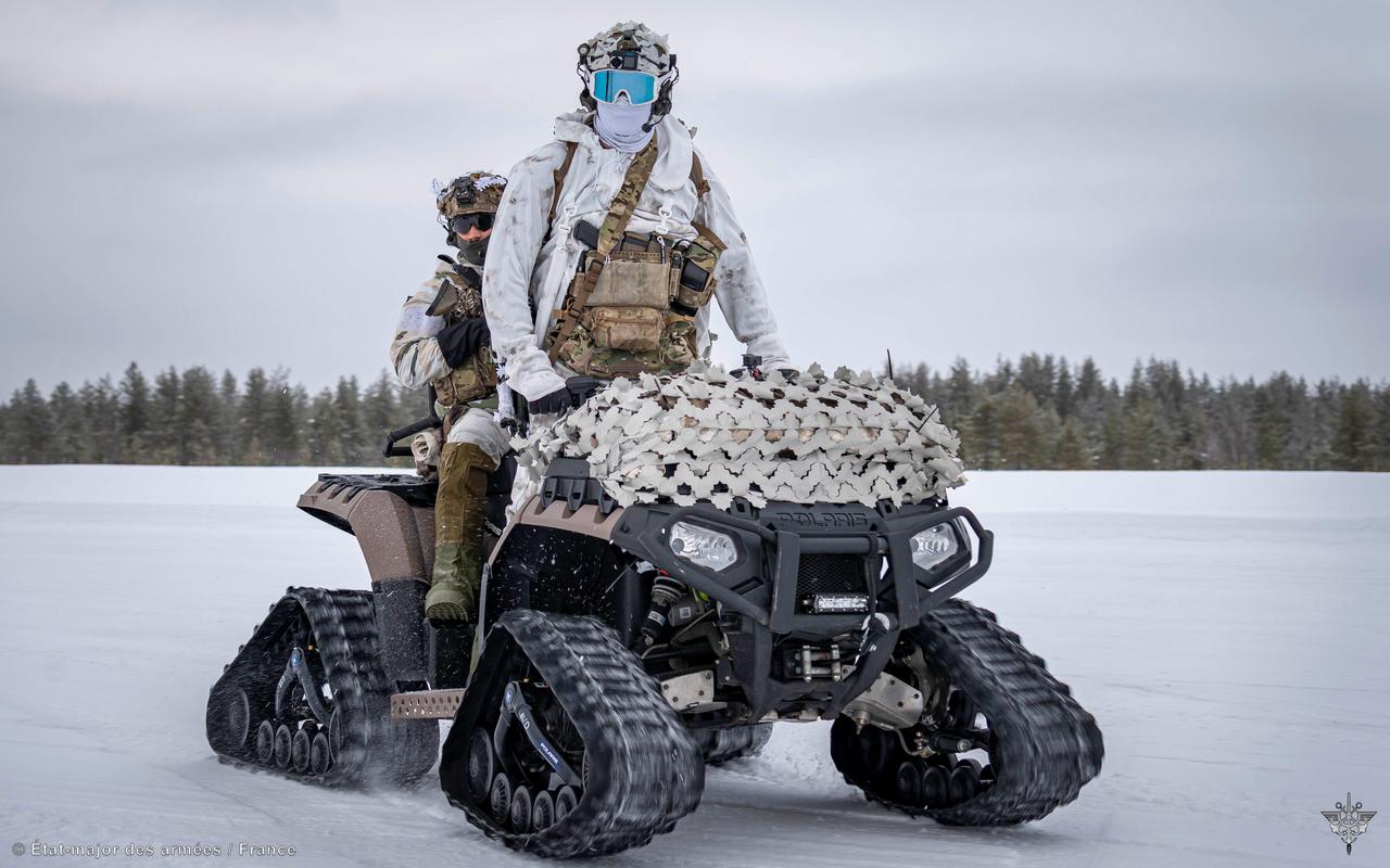 这是法国第27山地步兵旅突击队在2026年3月于拉普兰参加“冷响应26”演习的画面。他们驾驶的四轮车配备了小型履带,这种改装在极寒环境中很常见,能提升雪地机动性。演习地点拉普兰位于北欧,冬季气温极低,适合测试部队在严寒条件下的作战能力。法国山地部队参与此类多国演习,旨在增强北约盟友间的协同作战水平。