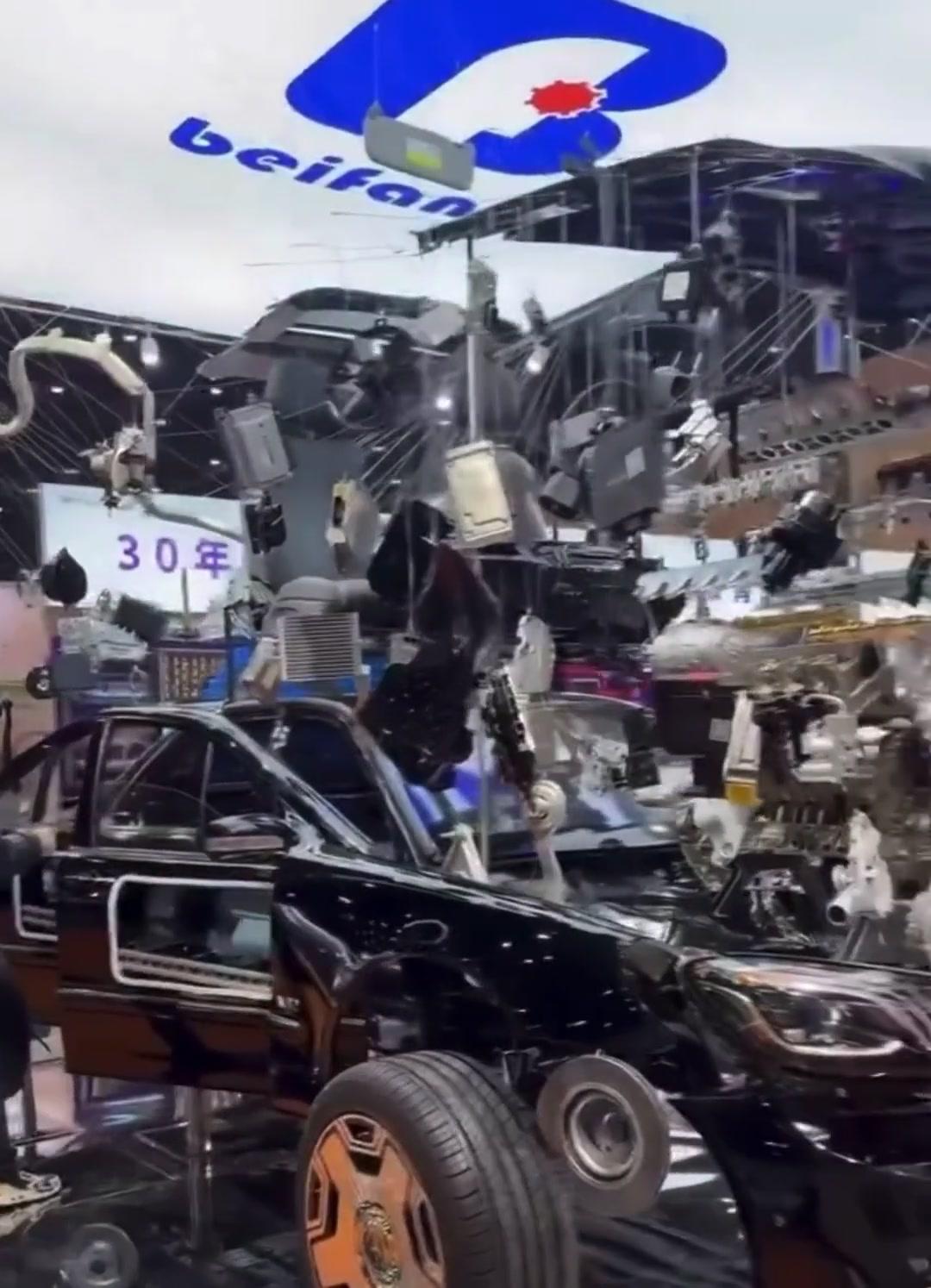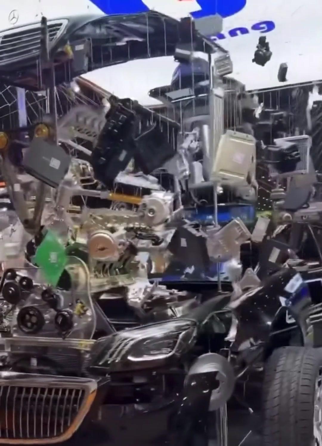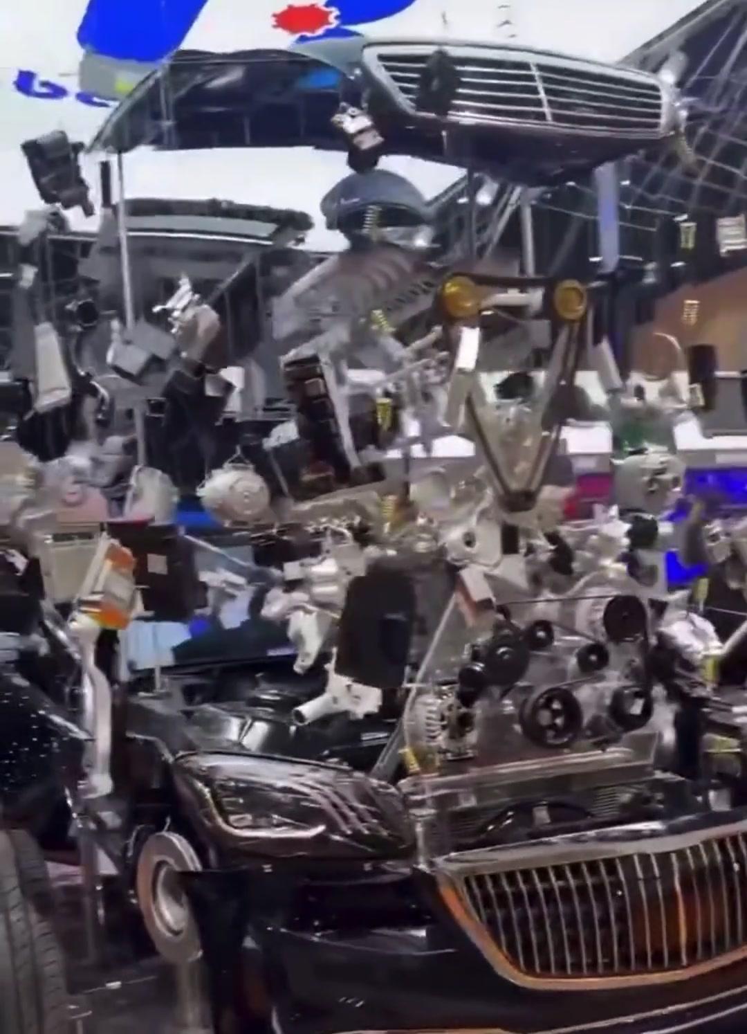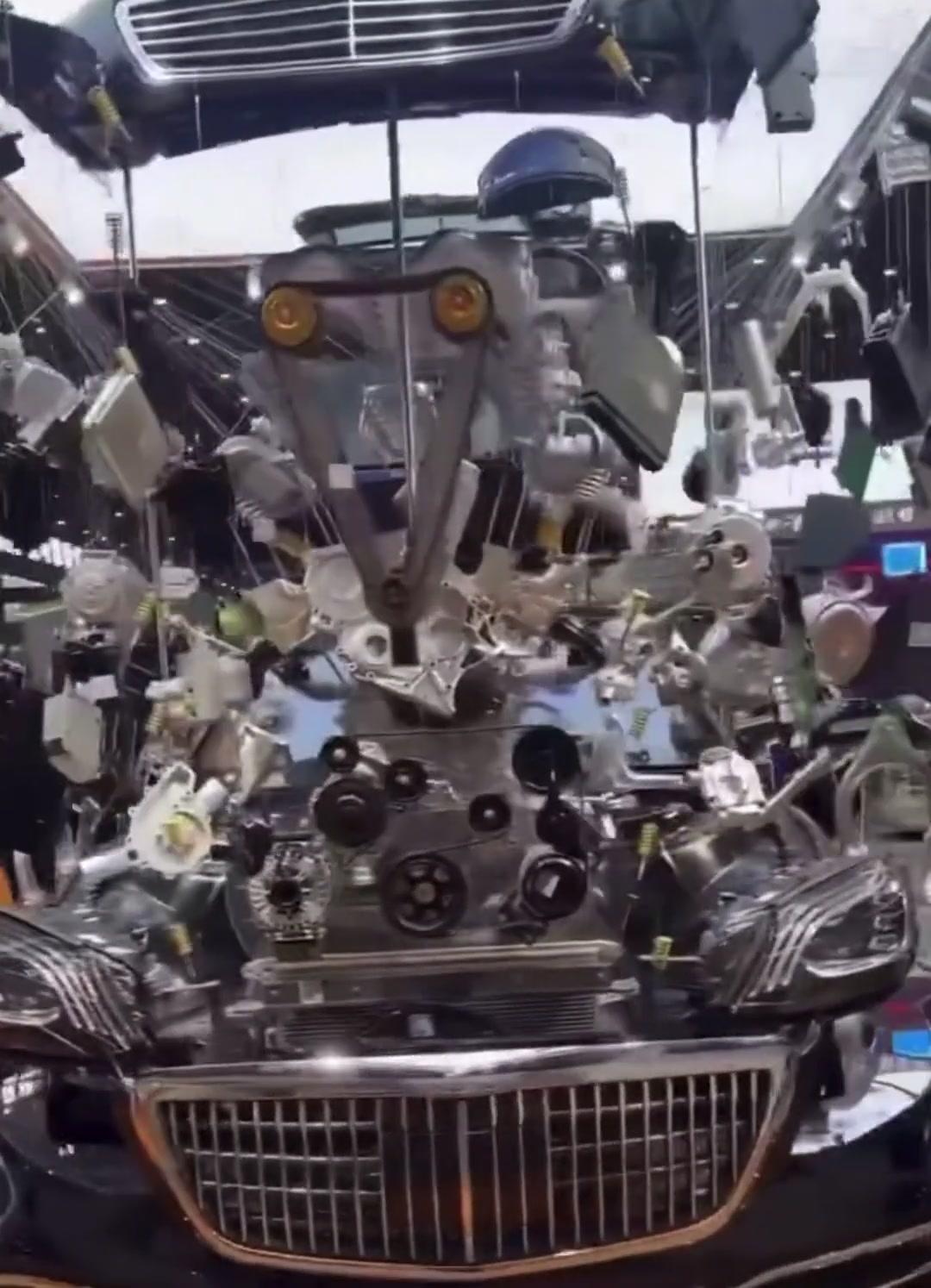 一辆梅赛德斯-迈巴赫被拆解成超过2万个零件,悬挂在空中展示。这是德国解剖学家冈瑟·冯·哈根斯人体世界展览的艺术装置,让观众直观看到豪车的复杂内部结构。有人质疑实际展出的零件可能远少于2万个,因为许多细小部件未展出;也有人觉得拆解一辆顶级豪华轿车有些可惜。