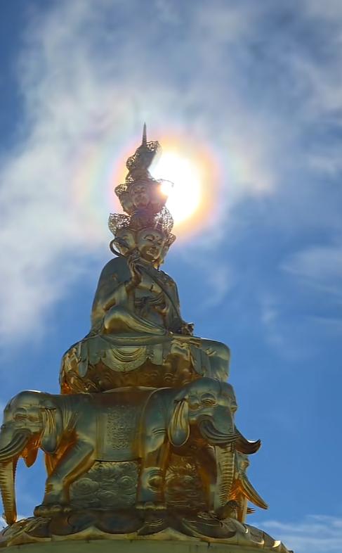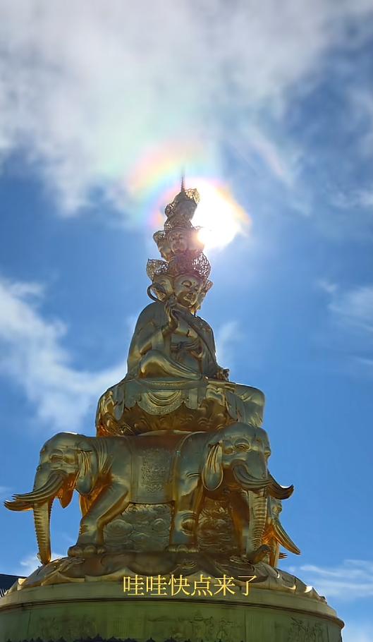 3月26日,四川,一男子去爬峨眉山,到山顶欣赏风景时,发现天上突然一个巨大的七彩光环这个光环刚好落在金佛头顶上,形成罕见的"金顶祥光"景象,就连男子这个本地人,也是第一次见,游客也纷纷直呼好运!网友:开眼了!   3月26日这天,四川本地的闵先生趁着天气尚可,独自前往峨眉山游玩,作为土生土长的本地人,他对这座名山早已熟悉,平日里也常来山上走动,此番登山并无特别目的,只是想趁着春日闲暇,到金顶看看风景,感受山间的清新空气。   闵先生沿着台阶慢慢登顶,站在观景台处眺望四周,看着翻腾的云海与远处的天际线,正沉浸在山间的静谧之中,天空中突然出现的异样景象,瞬间抓住了他的目光。   原本被云雾遮挡的阳光,在某个瞬间穿透了云层,以恰好的角度洒向山间,紧接着,一个巨大且清晰的七彩光环,毫无征兆地出现在云雾之间,色彩从内到外由紫到红层层渐变,光晕饱满又绚丽。   更神奇的是这道光环的位置精准无比,不偏不倚正好落在金顶十方普贤金像的头顶,将整尊金佛笼罩在七彩光晕之中,形成了峨眉山最负盛名的"金顶祥光"奇观,这一幕来得突然又震撼,闵先生当场愣在原地。   他在峨眉山脚下生活了几十年,听过无数次关于金顶祥光的传说,也见过不少山间出现的普通佛光,可如此巨大、又恰好笼罩金佛头顶的景象,却是有生以来第一次亲眼见到。   他来不及过多感慨,立刻拿出手机,对着眼前的奇观不停拍摄、录像,生怕错过这转瞬即逝的画面,周围的游客也很快注意到这一奇景,原本分散观景的人群纷纷聚拢过来,抬头望着天空中的七彩光环与金佛交相辉映的画面,个个满脸惊叹,不停发出惊呼。   有人双手合十默默祈祷,有人举着手机记录,所有人都在感叹自己运气太好,能遇上这般罕见的景象,光环在天空中持续了数分钟,七彩光晕始终稳稳停在金佛头顶,与金色的佛像、洁白的云海相互映衬,美得如梦似幻,仿佛传说中的祥瑞之兆降临人间。   直到云雾慢慢流动,阳光角度发生偏移,光环才渐渐变淡,最终消散在天际,只留下依旧翻腾的云海,和满场意犹未尽、仍在热议的游客,闵先生看着手机里拍下的清晰画面,依旧难掩内心的激动。   他知道这样的景象可遇不可求,是高山地形、稳定云海、特定阳光角度等多重条件完美契合,才形成的自然光学现象,随后闵先生将拍摄的视频和照片分享到社交平台,很快引发了大量关注。   画面中七彩光环笼罩金佛的绝美场景,让无数网友惊叹不已,纷纷留言直呼"开眼了""见者好运",不少人感慨自己多次前往峨眉山都未能遇见,羡慕闵先生的好运气。   这场偶然邂逅的金顶祥光,不仅让身为本地人的闵先生大开眼界,也让现场游客收获了意外的惊喜,更通过网络让更多人见识到峨眉山自然奇观的神奇与壮美,成为众人心中难忘的春日幸运记忆。