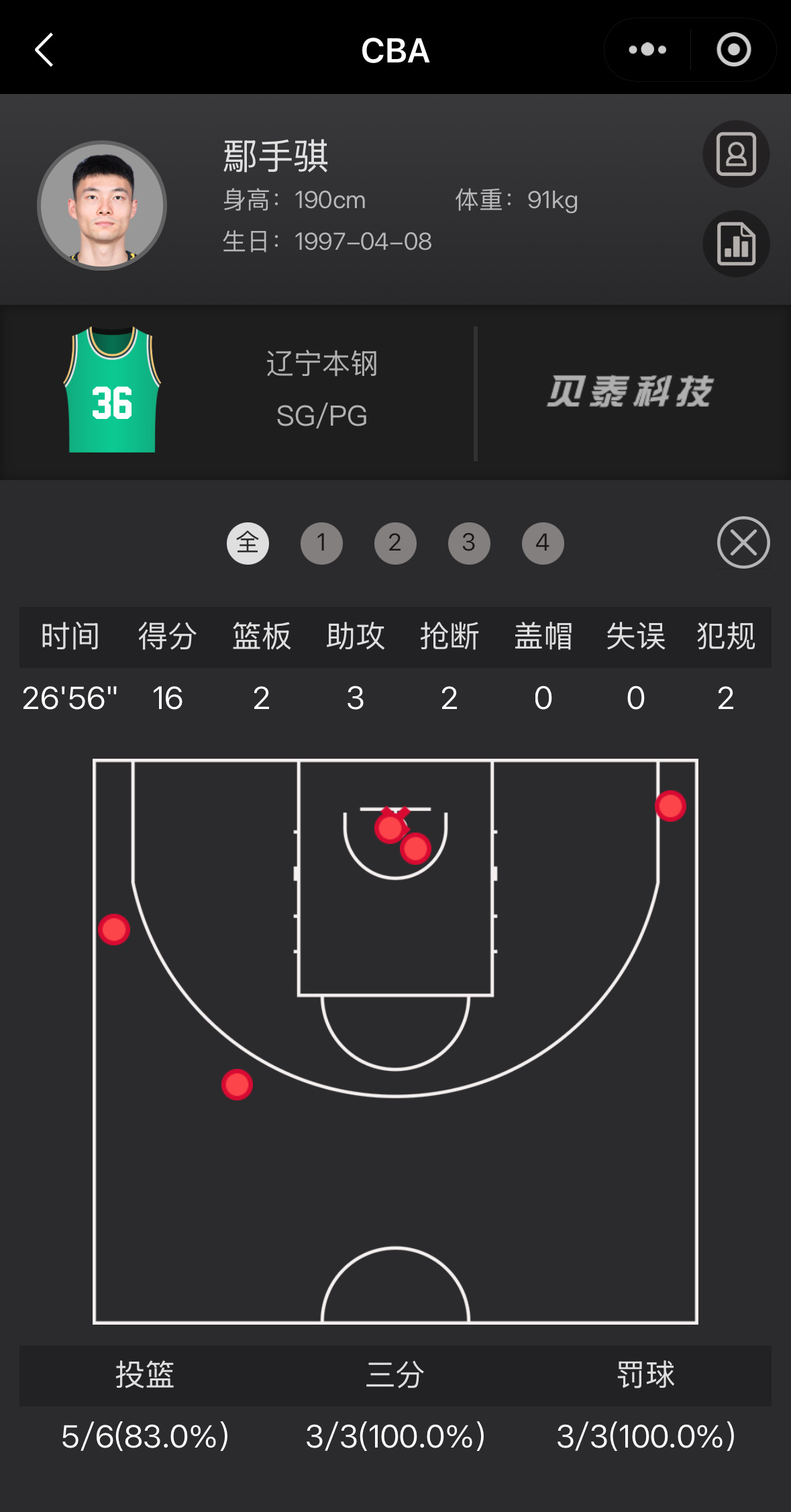 辽宁男篮vs新疆男篮 本场比赛国内球员发挥最好的一定是手帝