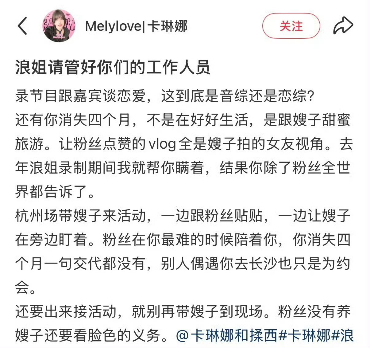 卡琳娜站姐爆卡琳娜和浪姐工作人员谈恋爱