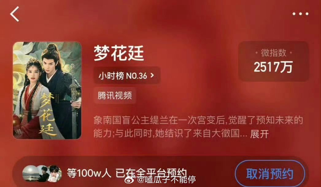 陈哲远张婧仪梦花廷预约破100万了🎉