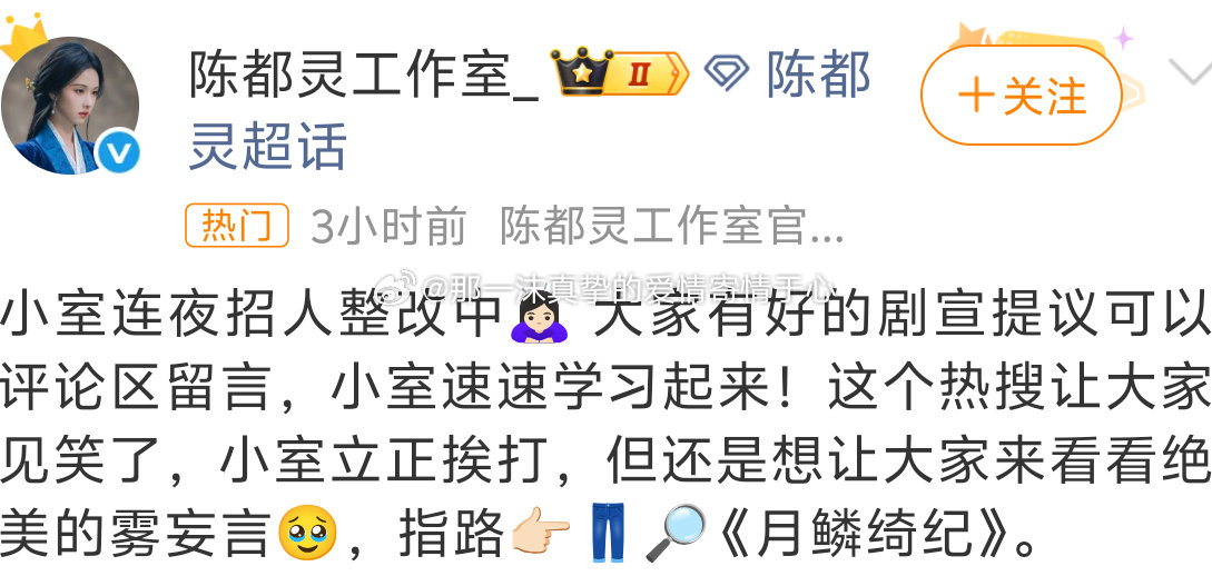 陈都灵工作室连夜招人整改陈都灵陈都灵工作室连夜招人整改!一沫真挚的情话