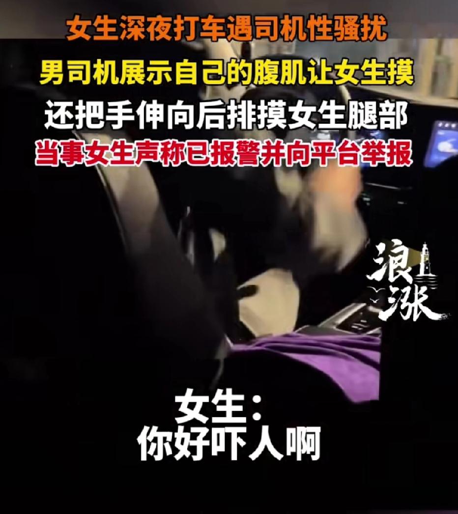 近日浙江杭州,一女生深夜打车,竟遭到司机性骚扰!男司机先是炫耀腹肌让女生摸,见她不搭理,直接伸手到后排摸她腿部! 女生说当时坐在后排,司机一边开车一边聊些有的没的,突然撩起衣服露出腹肌,让她伸手摸摸。她没理睬,结果司机直接把右手伸到后排,摸她的腿。女生吓坏了,偷偷录下证据,下车后立刻报警并向平台举报。 视频发到网上后,网友怒了:这种人就是看准深夜、看准女生一个人,才敢这么嚣张!还有人说:必须严惩,不然下次指不定干出什么事!你深夜打车遇到过什么糟心事吗?