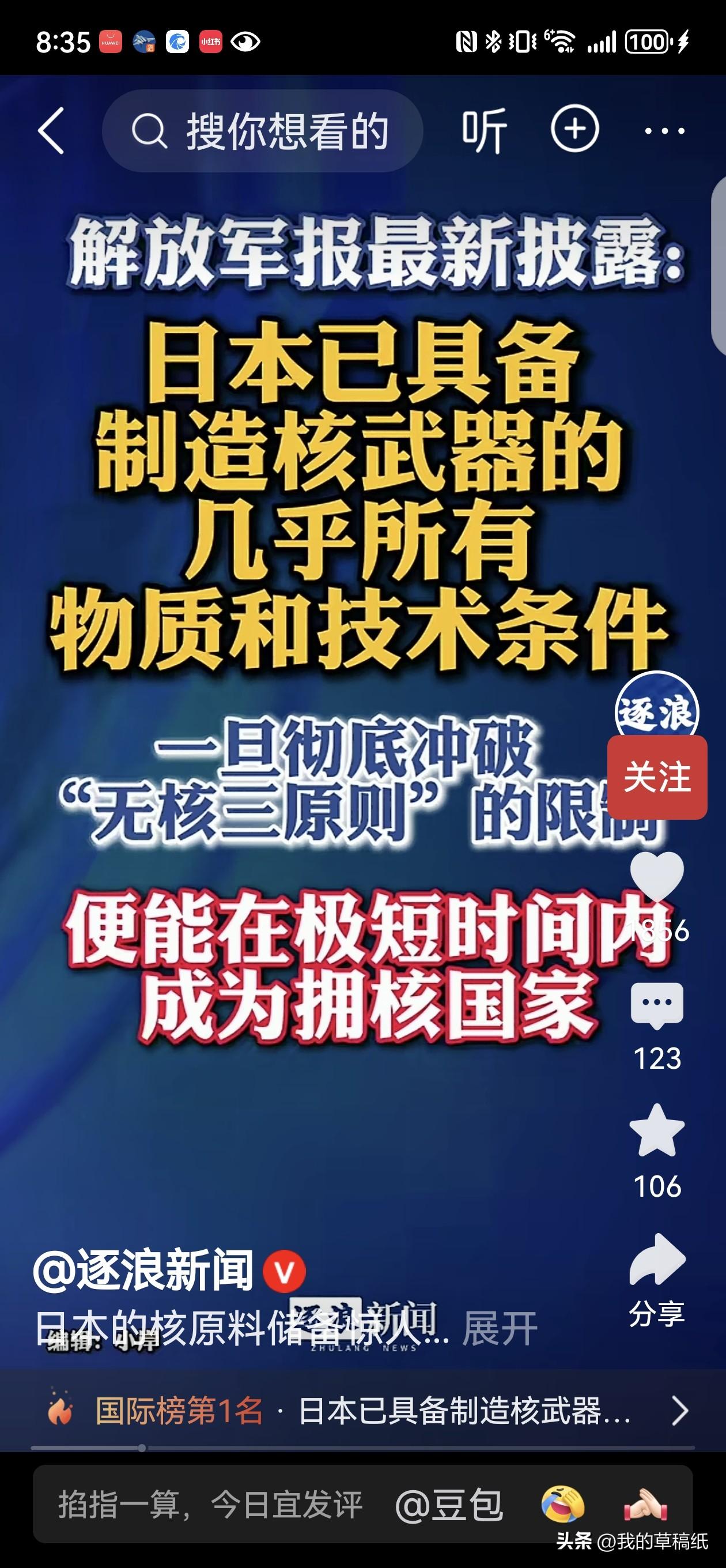 警报拉响!解放军报重磅发声:日本距拥核只差一步! 太危险了!解放军报最新披露,日本已集齐造核全部物质与技术,一旦撕破无核三原则,极短时间就能成为拥核国家! 别以为这是危言耸听,数据摆在这: - 核原料囤到惊人:44.4吨分离钚,足够造约5500枚核弹头,远超民用需求,野心藏不住。 - 技术全线打通:全球唯一掌握完整核燃料循环体系的无核国家,浓缩、提纯、制造全链条成熟,专家直言只差拧最后一颗螺丝。 - 政策不断松绑:无核三原则频频被右翼挑衅,修宪扩军步步紧逼,和平面具正在撕碎。 作为二战战败国,日本无视国际秩序,疯狂储备核能力,对亚太乃至全球都是巨大安全隐患。历史伤疤未愈,核阴影再逼近,绝不能掉以轻心。 你认为日本敢真正突破红线吗?我们该保持高度警惕吗?评论区说说你的观点!