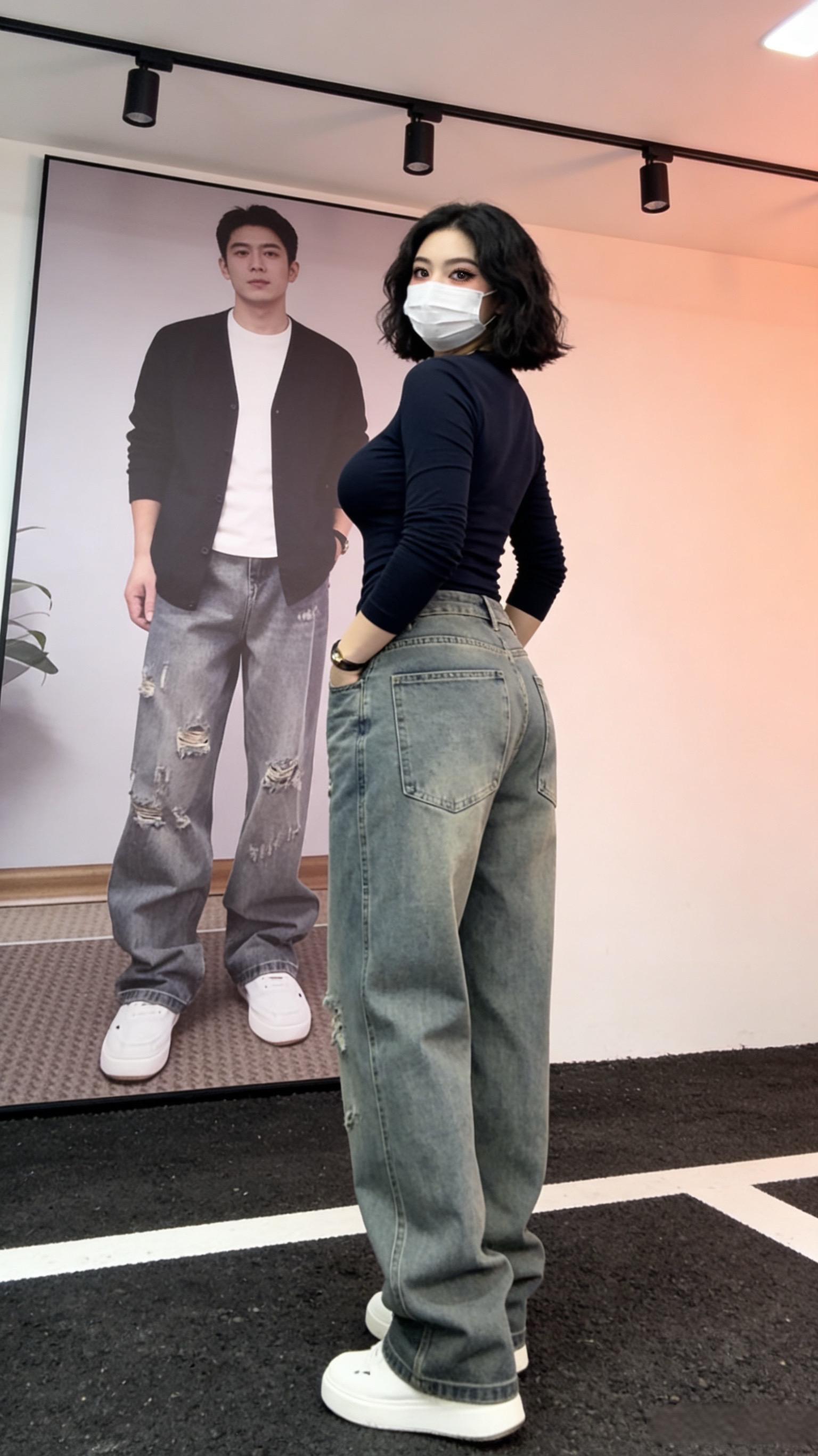 大码美式休闲痞帅复古破洞补丁牛仔裤男直筒宽松百搭锥形乞丐裤子 ✓