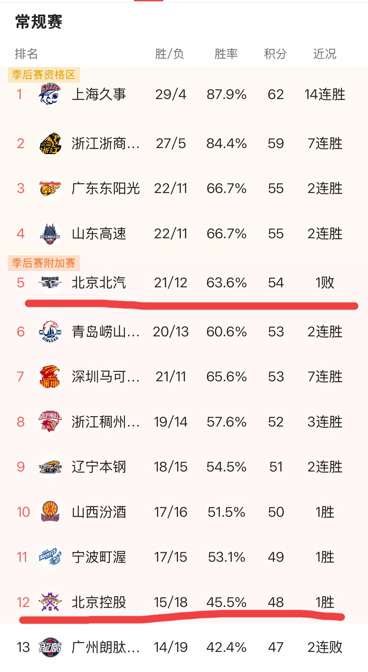 惊险卡位!北京德比或首轮上演,北控真要复刻黑12奇迹? 一场比赛直接改写季后赛对阵!北汽惨败跌出前四,跌至第5;北控末节逆袭卡位,稳住第12。 一上一下,两队极有可能在季后赛首轮直接上演京城德比。 北汽如今硬仗不稳,阵容年龄偏大,高强度比赛体能隐患突出,关键战经常掉链子。 北控则毫无压力、拼劲拉满,上赛季已有以下克上的黑马经历,常规赛还客场88:82击败北汽,心理和打法都不吃亏。 真要是德比相遇,北控完全有机会再次一黑到底,复刻黑12奇迹! CBA 北京德比 北控男篮 北京首钢男篮 CBA季后赛