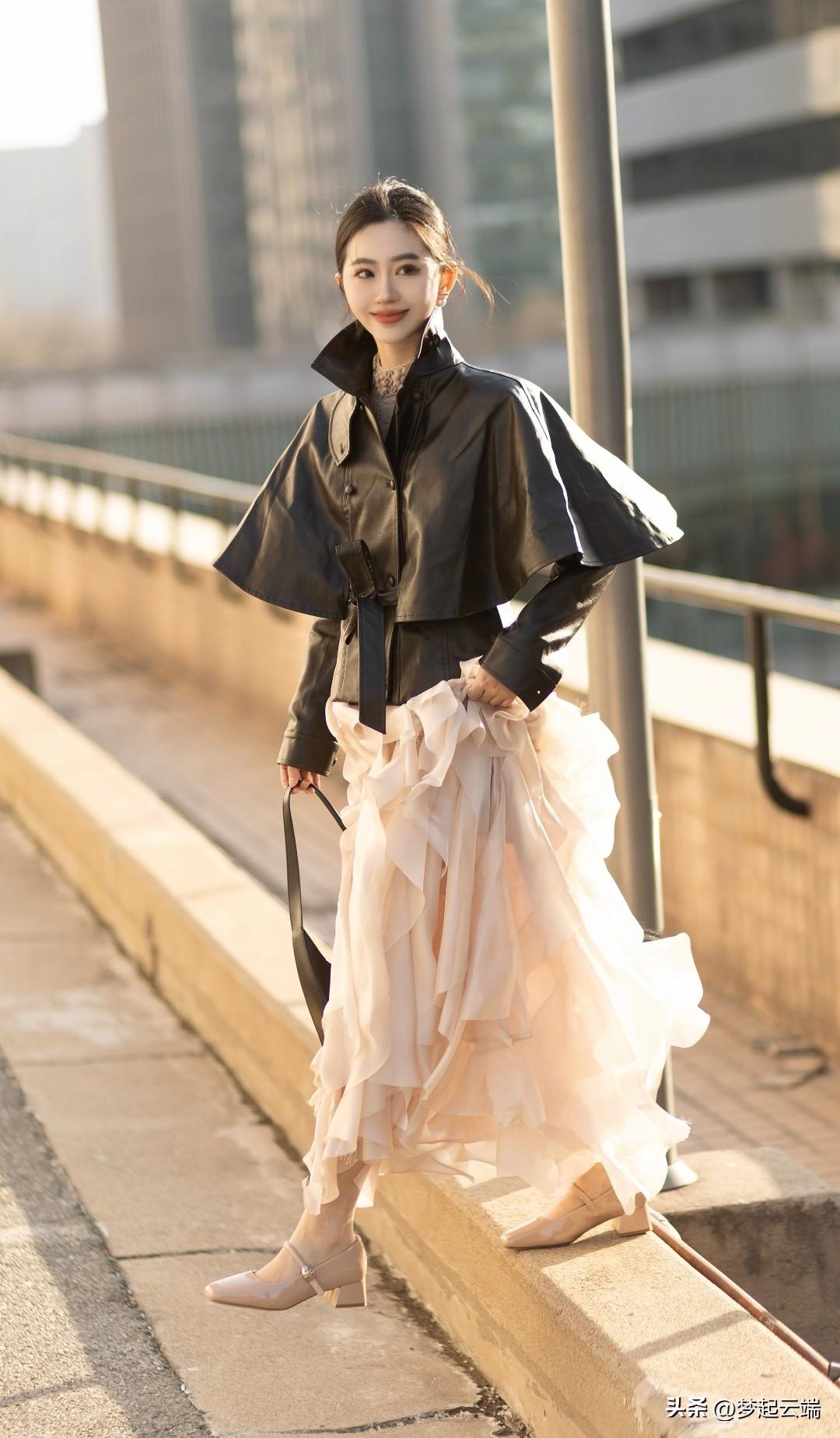 都市风与浪漫裙摆的完美碰撞,时尚与优雅的完美结合。
