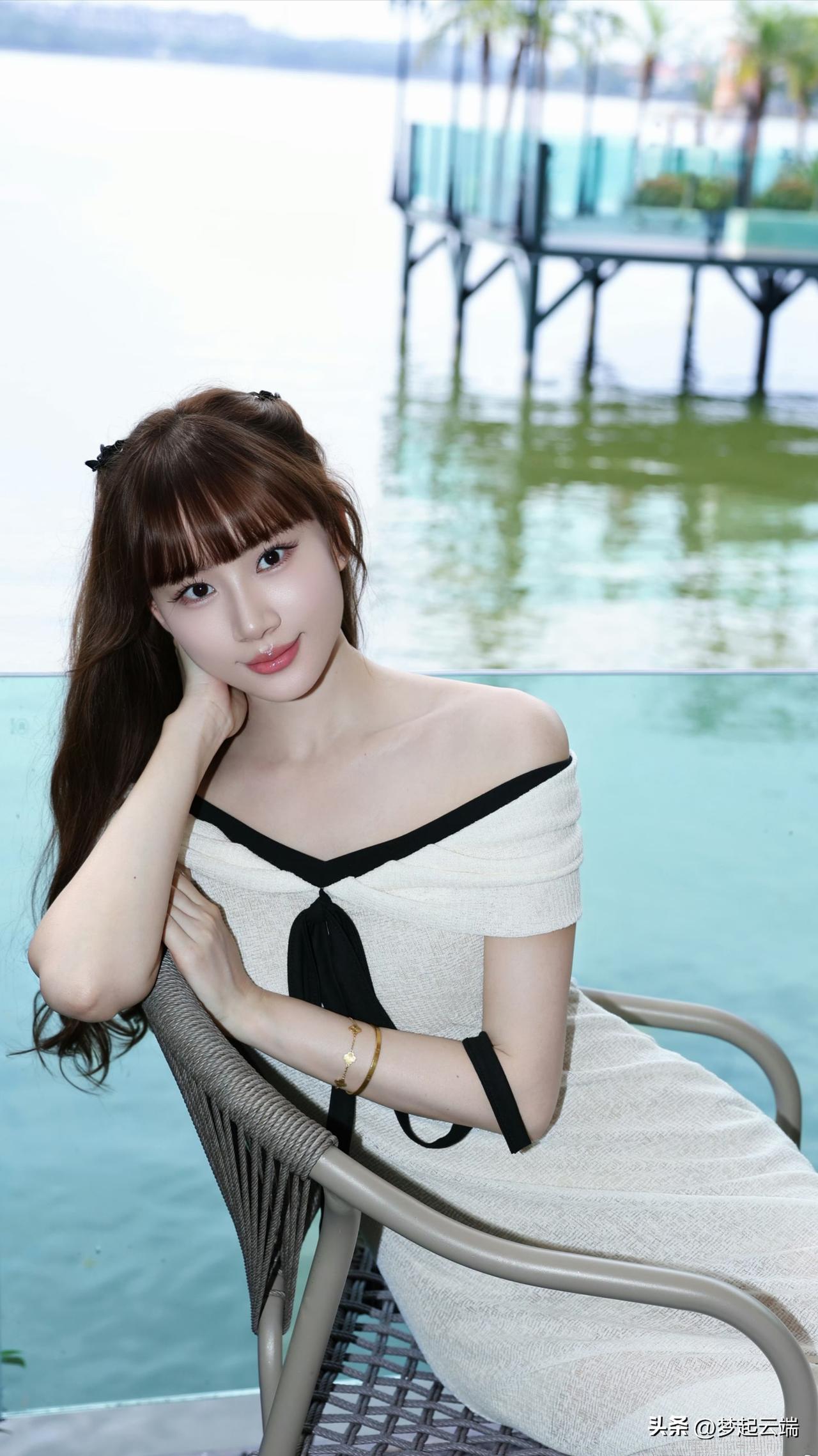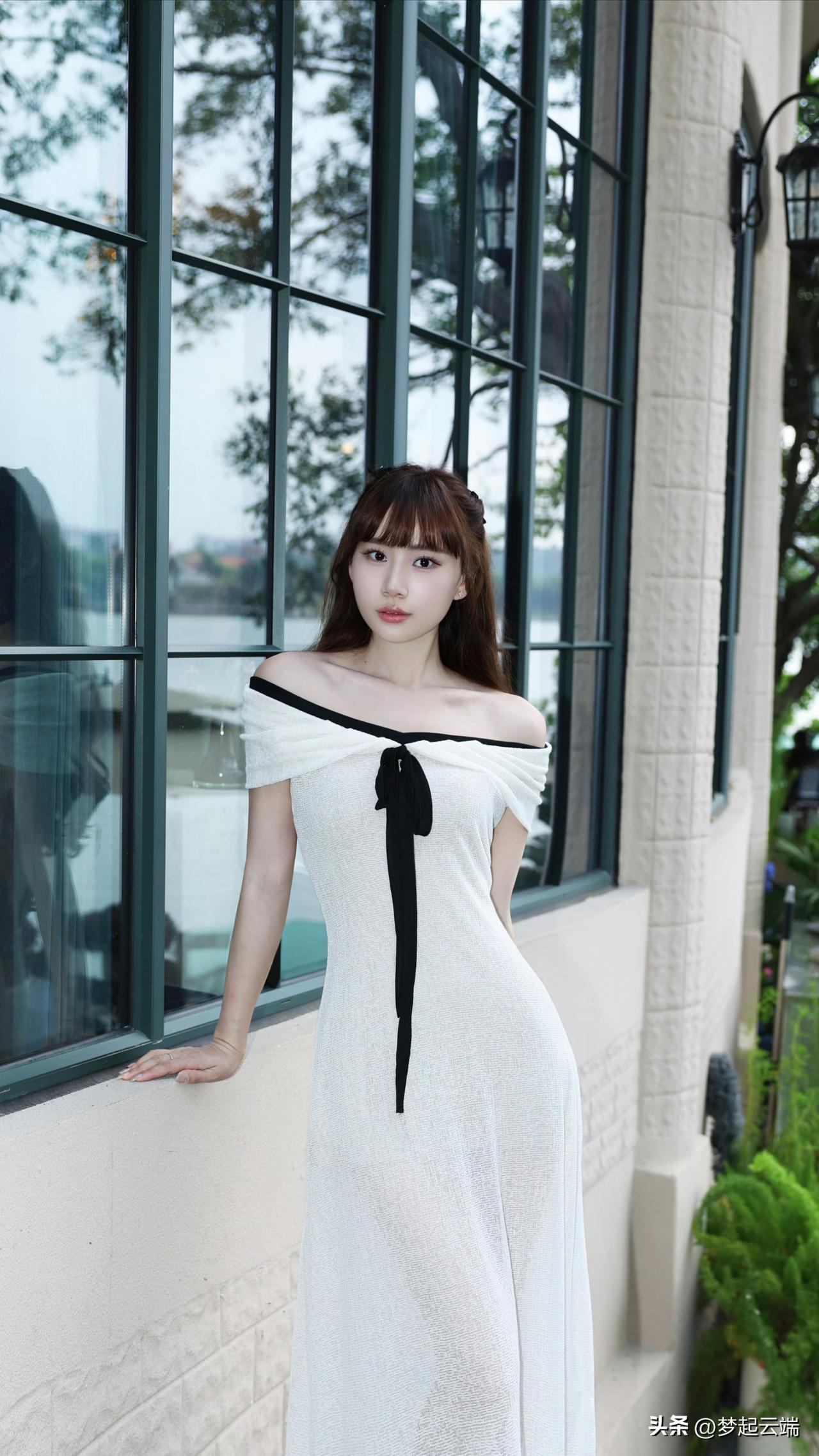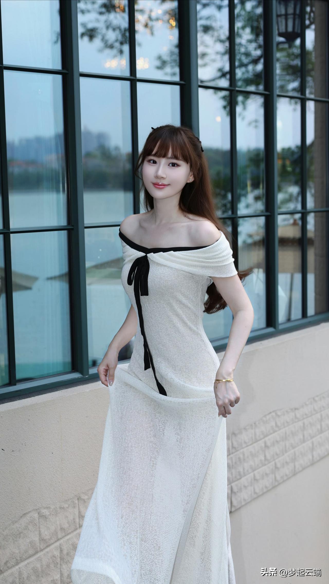 温柔优雅,金色礼服与自然光交相辉映,尽显迷人魅力。
