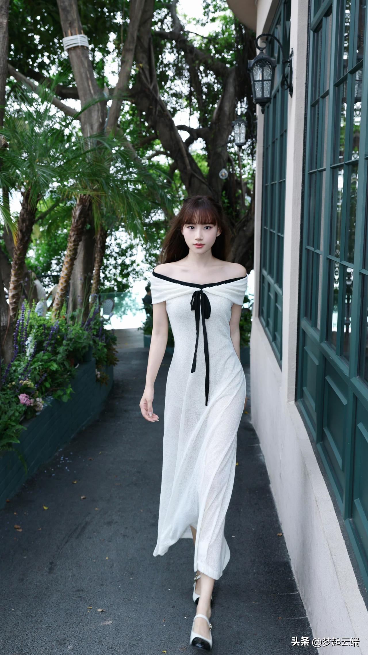 甜美少女风,蕾丝连衣裙,清新自然,阳光明媚。