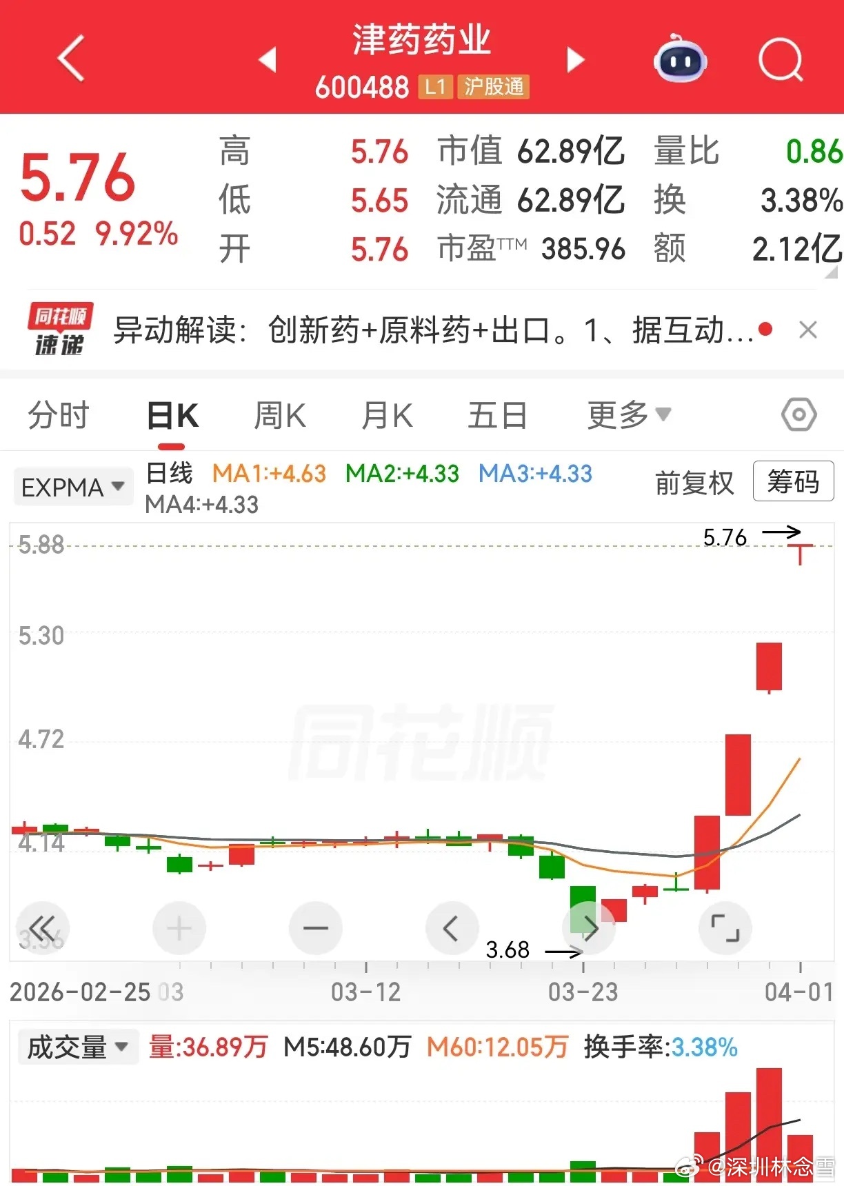 津药药业冲击四进五,是今日核心风向标,不求必成,但求稳住、带动后排。