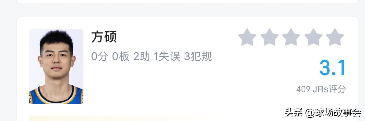 北京队66:81输给浙江队的这一刻,球迷给方硕的评分低到了3.1分! 昨晚,CBA常规赛北京队对阵浙江队的比赛中,北京队因为赵睿有伤,方硕获得了长达17分钟的出场时间,比赛中他竟然一分没得,一个篮板没抢到,一次失误,三个犯规。 唯一有效数据就是拿到了两次助攻…… 现在的方硕在比赛中经常出现传球不及时,跑动慢,投篮选择勉强的习惯。 35岁的方硕本赛季场均能够得到3.2分、1个篮板球和1.6次助攻。 说真的,方硕现在的个人能力最多就是一个普通球队的替补水平,想要指望他梳理球队进攻真的不现实。