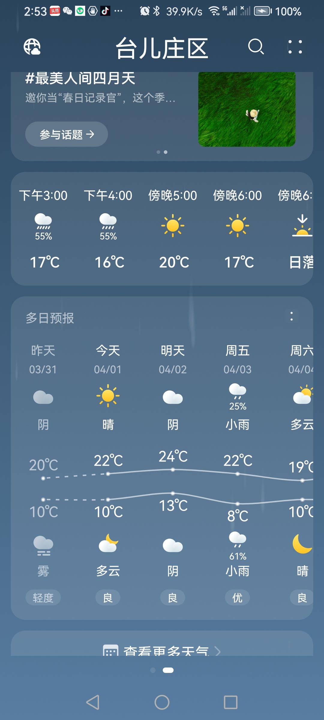 二月十四日天气预报晴,再预报小雨。实际上午阴,下午突下小雨;晚间晴。(图片来源:老山兰随手拍)