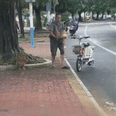 有遛鸟的,也有遛狗的,今儿这位大爷居然遛鸡。这鸡被他训得可真听话,看来从小陪伴着长大,什么小动物都能通人性。这两只老母鸡,要是下蛋的话,玩得更欢实。