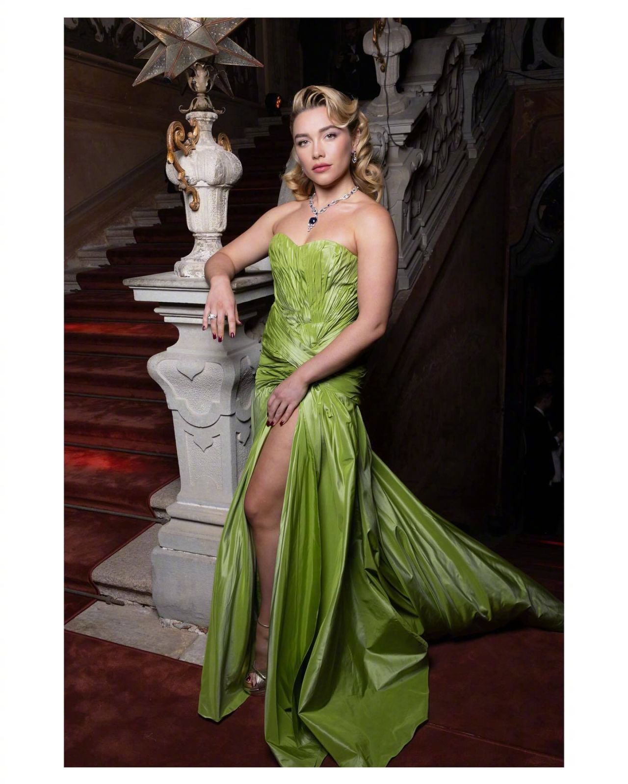 弗洛伦斯·皮尤与《浴血黑帮》男星男友芬恩·科尔的恋情公开,两人一起亮相宝格丽活动。两位都是 30 岁, 2024 年 9 月 被拍到一起离开派对后传出恋情,但直到现在才正式公开承认恋人关系。弗洛伦斯·皮尤身穿 Elie Saab 2006 春夏高级定制礼服,佩戴宝格丽 Aeterna 高级珠宝项链。米拉服饰解析