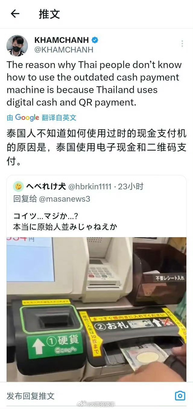 日本人嘲笑泰国人不知道怎么付现金,泰国人反讽日本人太落后,大家现在都在用二维码。海外新鲜事