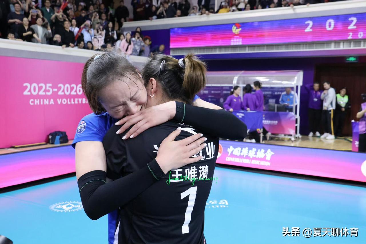 仲慧和王唯漪又抱在一起失声痛哭[流泪][流泪]记得去年她们两个输给江苏女排后也是抱头痛哭,今年又是她们俩,不过今年这是喜极而泣,多年的努力终于在退役这一年圆梦了!王唯漪坚持了13年,身边的队友退役了一批又一批,送走了一届又一届,打完这届联赛她也可以退役了!昨晚上等候领奖的通道里,看到她一直在哭[流泪]