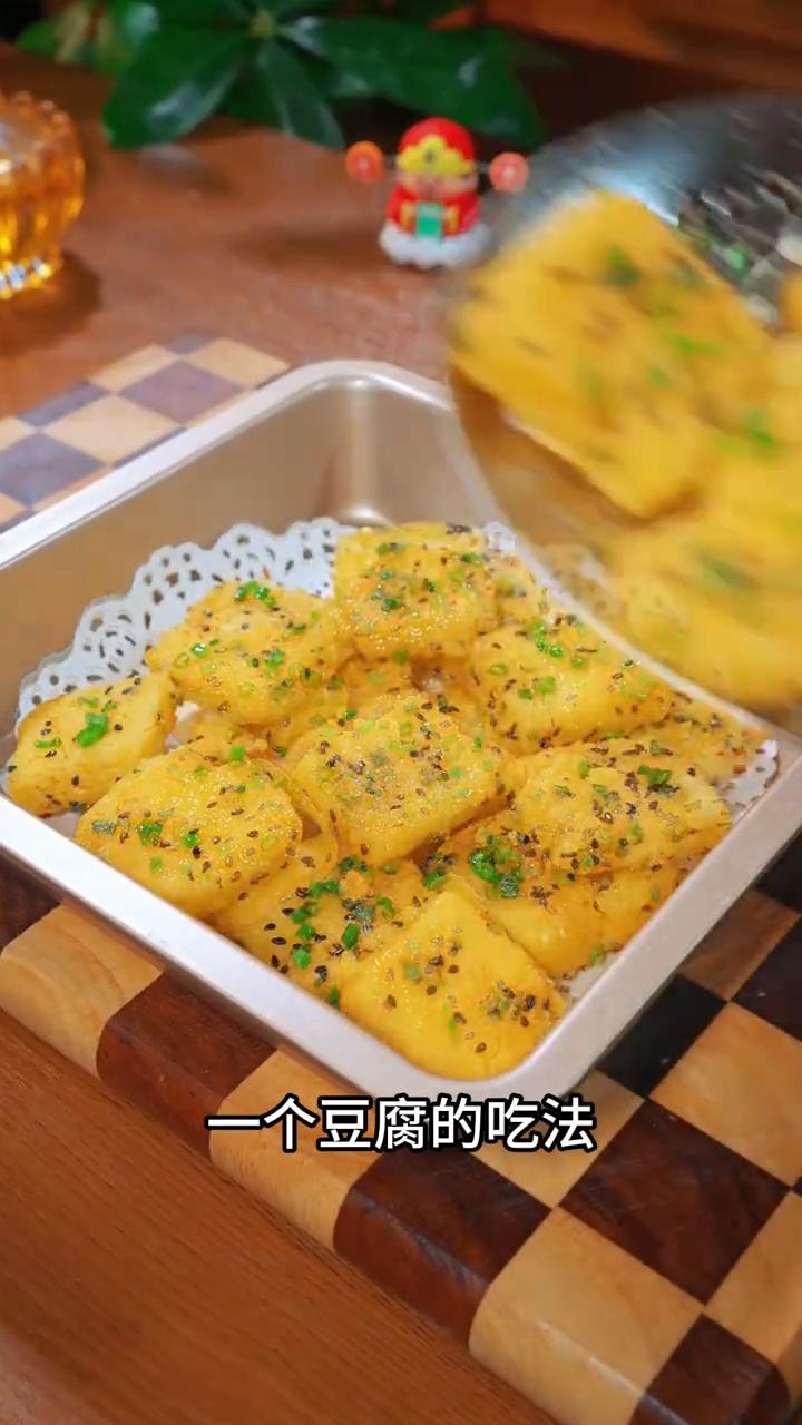 蛋黄酱豆腐。 家人们注意看,我两个老公从小就爱吃豆腐,今天闺蜜教了我一个豆腐的神仙吃法,不用烤、不用炸,个个咸香味美,我家5个女儿每次都能吃光盘,比大鱼大肉好吃太多了。 ·3毛钱买了两斤豆腐,给它切成大大的小块,先裹一层蛋液,再裹一层生粉,这样煎出来的豆腐会特别的香。 ·开中小火慢煎,煎至四面焦黄。 ·好吃的关键,放入两勺这个按照自己秘方调配好的海鸭咸蛋黄酱,其他什么调料都不用放了。 ·小火炒至流沙冒泡泡,然后放入煎好的豆腐,撒上葱花和白芝麻,将它翻炒均匀即可出锅。 咸香的蛋黄酱包裹着酥脆的豆腐,老公每次5碗米饭都不够吃。 不知道这个海鸭咸蛋黄酱哪里有的朋友可以点我头像。