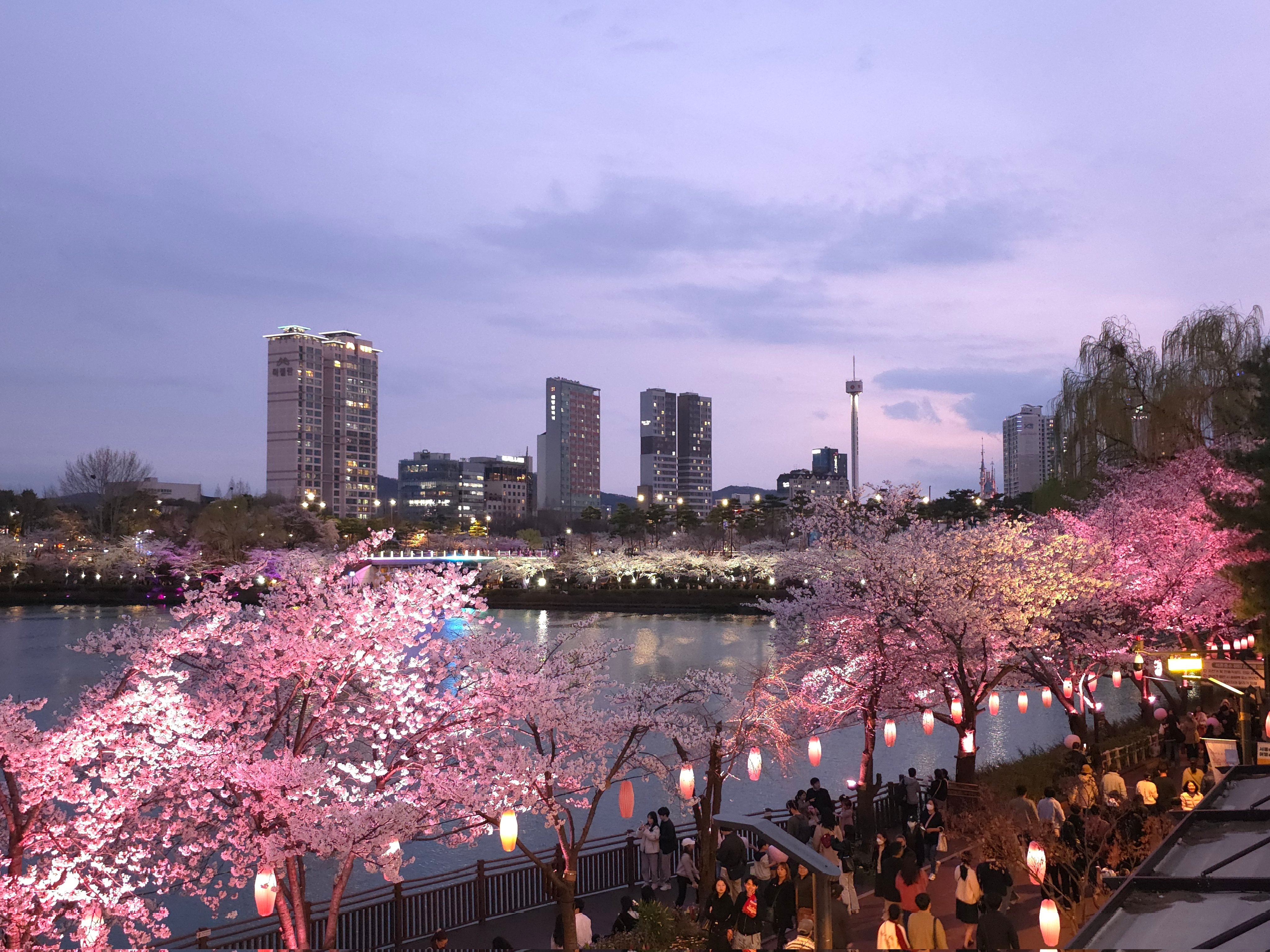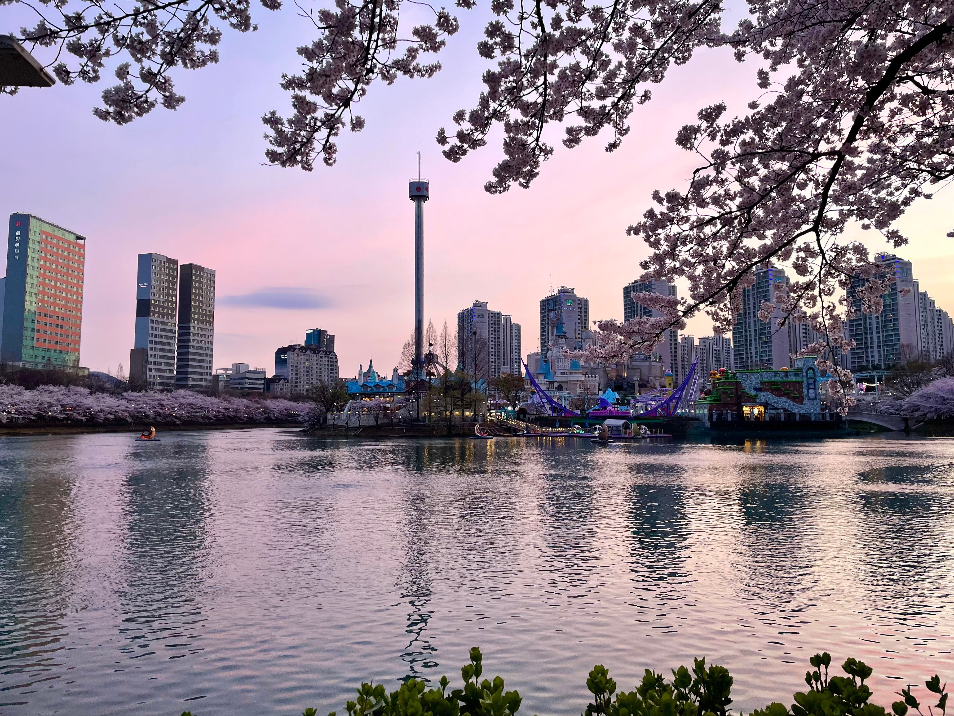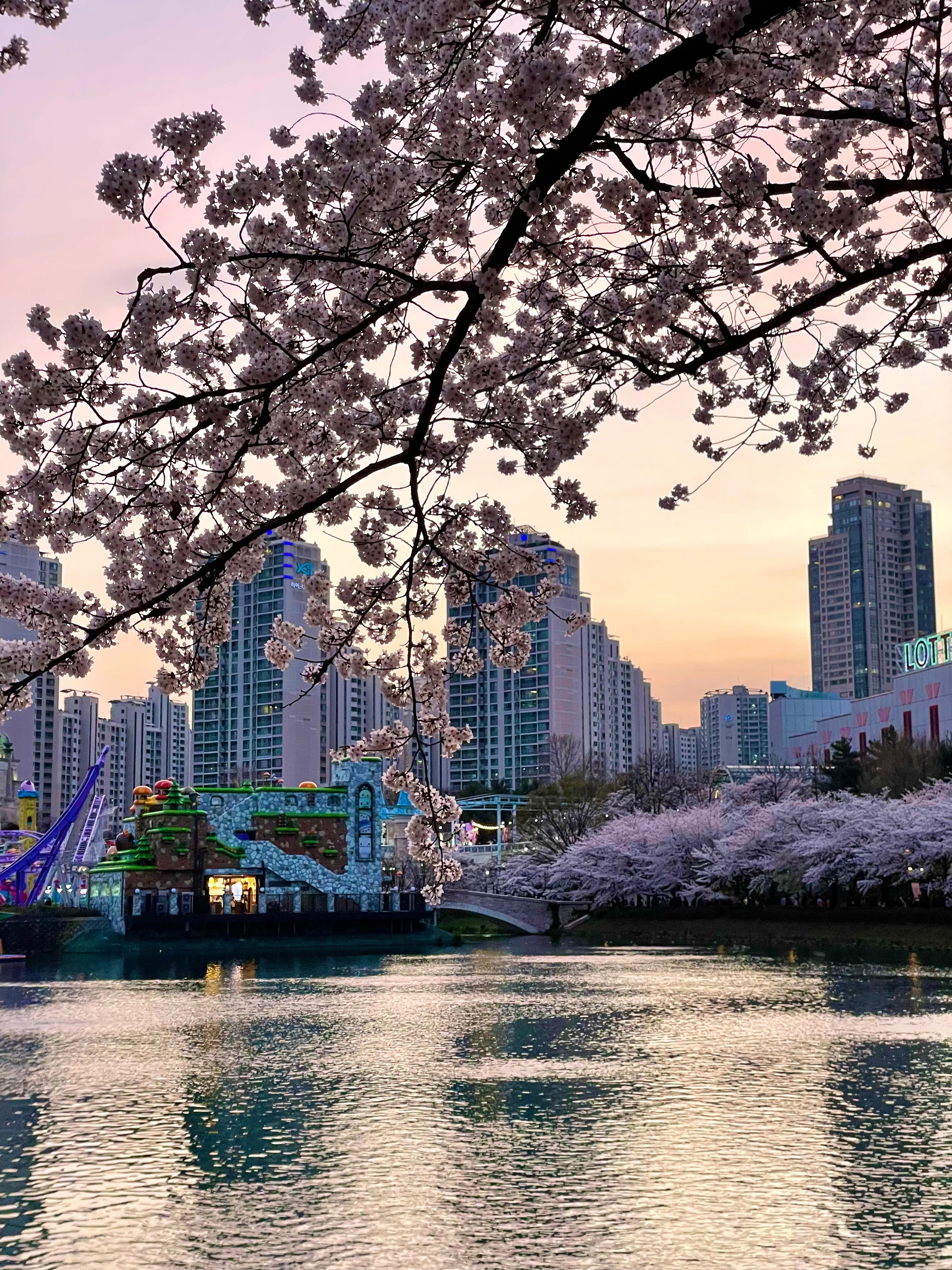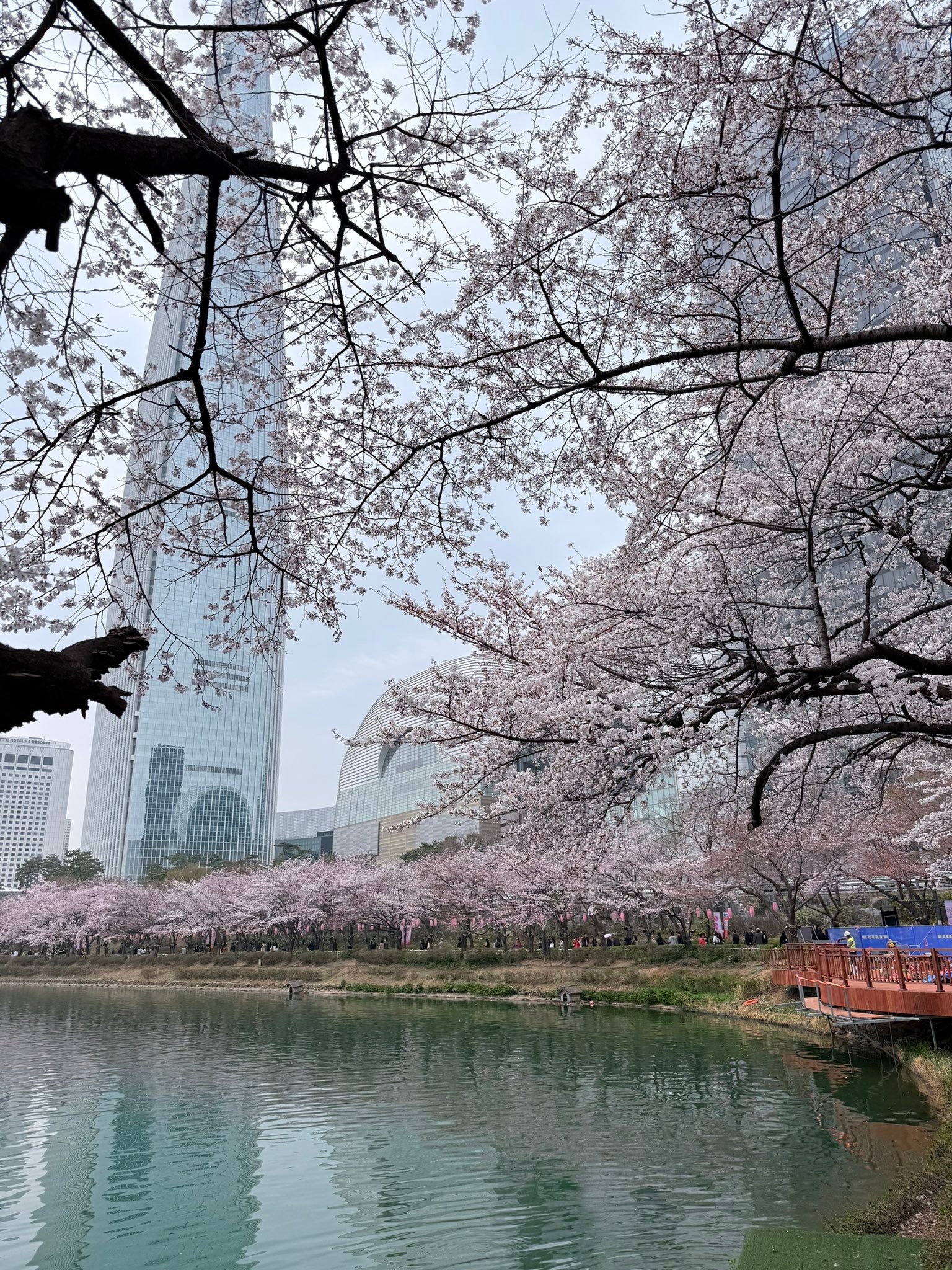 今年春天去不了小韩的人儿石村湖水樱花盛开了🌸