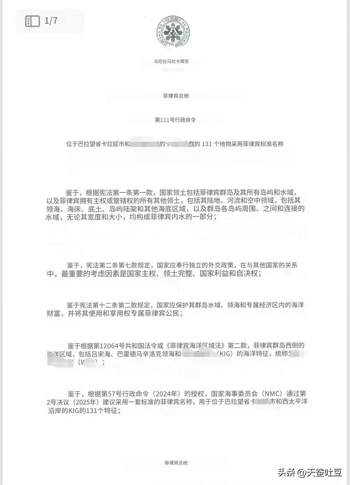 菲律宾总统小马科斯发布第111号行政命令,将中国南沙群岛131处岛礁非法改名。 ➤菲律宾第111号行政命令于3月26号签署,3月31号公开。 也就是说菲律宾一方面因中东局势导致国内能源危机,向中国求援;一方面在求援期间酝酿非法更改中国南沙群岛岛礁名称,并在中国向其援助(非免费)柴油到货后公开挑衅,其无耻嘴脸可以说体现的淋漓尽致。 ➤此外,国与国之间,没有孤立的一件事,任何一件事,都是一整套利益、立场、布局的延伸。有些事情一时无法理解很正常,多点耐心再看看。菲律宾海局势 菲律宾开战 菲总统杜特尔特