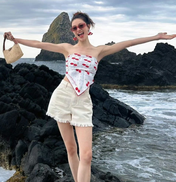 钟楚曦这度假状态简直把属猴的精髓拿捏得死死的 连放松方式都是爬树 这身穿搭也很有夏日氛围,紧身的樱桃裹胸背心俏皮又显身材,配白色短裤清爽利落,棕色小凉鞋一蹬,度假感拉满。 但最绝的还是那双腿,盘在树干上稳当当的,核心力量和腿部线条一看就是常年练出来的,真有劲儿!她整个人洋溢着那种阳光、健康、不受拘束的生命力,看着就让人心情好。