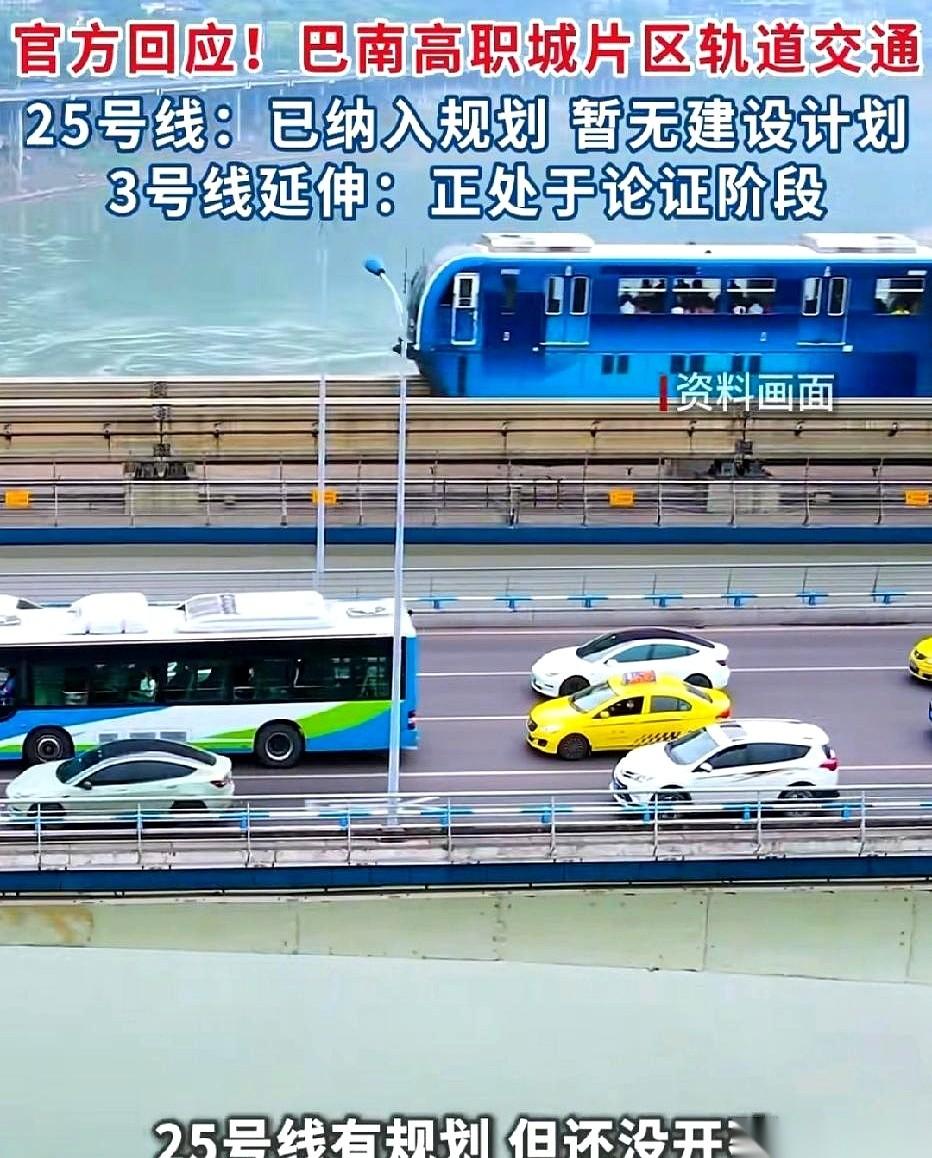 巴南高职城片区的轨道交通,官方文件终于下来了。 白纸黑字写着:轨道交通25号线,安排!线路穿过花溪,直达高职城,还能在理工大学换乘18号线。 但紧跟着的一行小字,让所有人的心都沉了一下。 这条线,只是被画进了到2035年的远景规划图里。至于具体的站点设在哪、线路怎么拐弯、哪天挖下第一铲土,一个字都没提。 说白了,就是墙上挂着一张饼,告诉你未来有,但现在别想。 另一条大家念叨了很久的3号线南延线,消息更让人泄气。官方回复就俩字:论证。 什么叫论证?就是还在开会研究,八字还没一撇,连一张画在墙上的饼都没有。 可高职城和花溪滨江这边,每天早高峰的公交站,人挤得像罐头;下班点的大桥上,车堵得一眼望不到头。几十万的学生、居民,每天的时间就这么耗在路上。 规划图画得再好,也解不了眼前的渴。 一个是有影儿但遥遥无期的25号线,一个是更方便但影儿都没有的3号线南延。你觉得,哪个会先来?