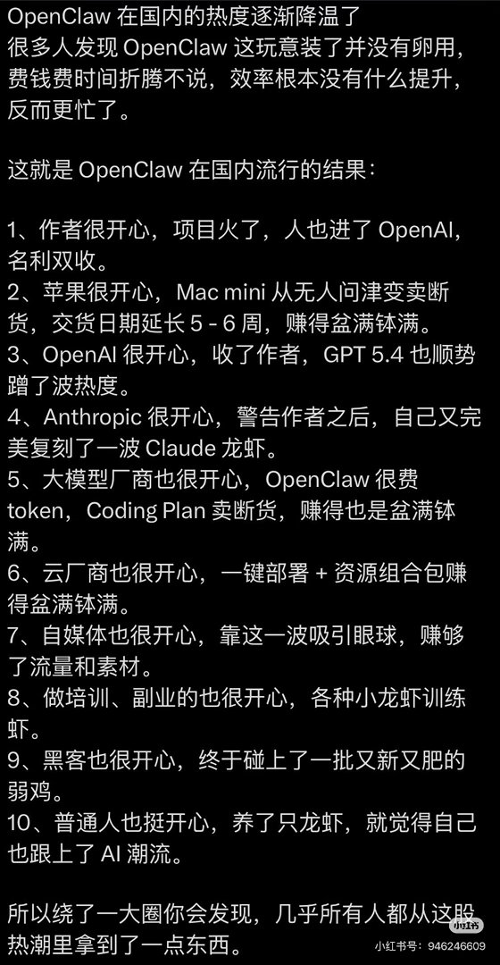 普通人开心就行觉得给龙虾发个任务就当懂AI了