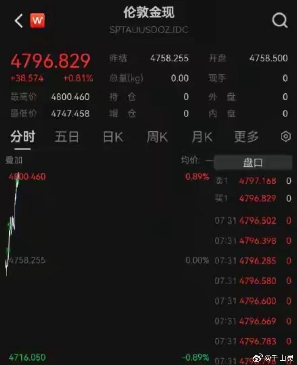 金价急速上涨现货黄金涨回4800美元4月2日,伦敦现货黄金早盘直线拉升,一度突破4800美元。伦敦现货黄金最高触及4800.46美元。