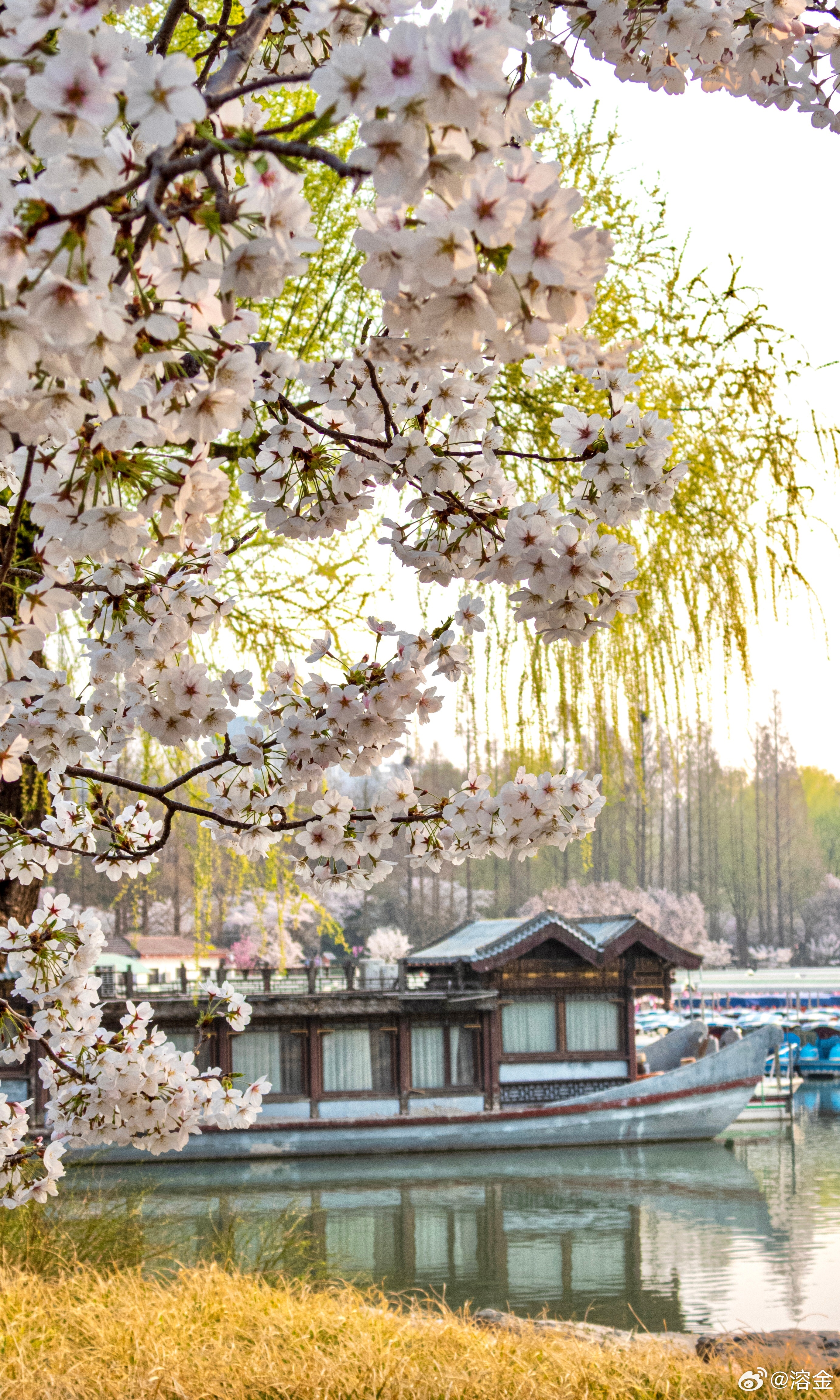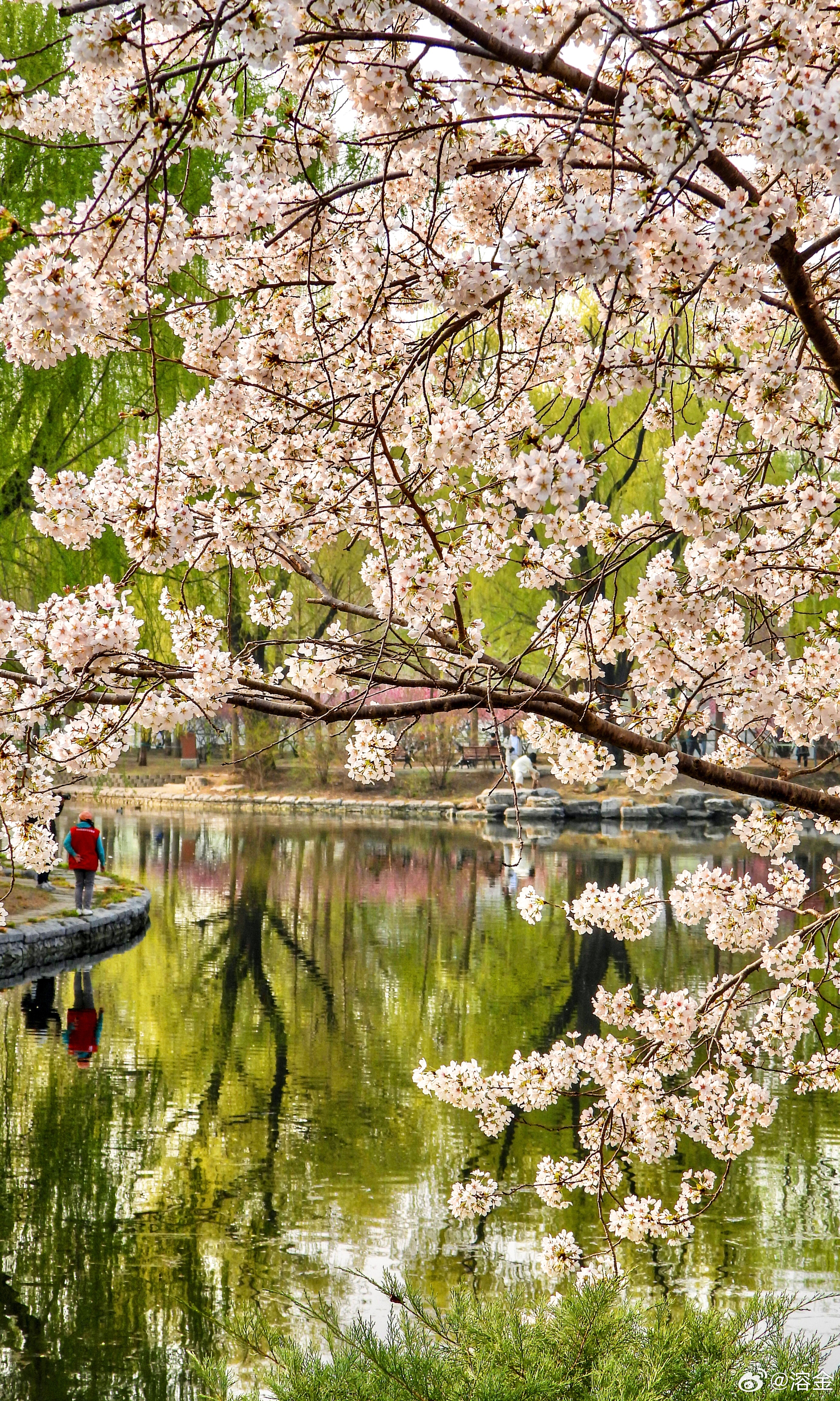 【玉渊潭公园】春潭铺碎玉,云雪覆枝桠。日暖香初动,风轻影欲斜。楼台藏翠霭,蜂蝶逐芳华。醉倚晴光里,樱霞落鬓纱。摄影