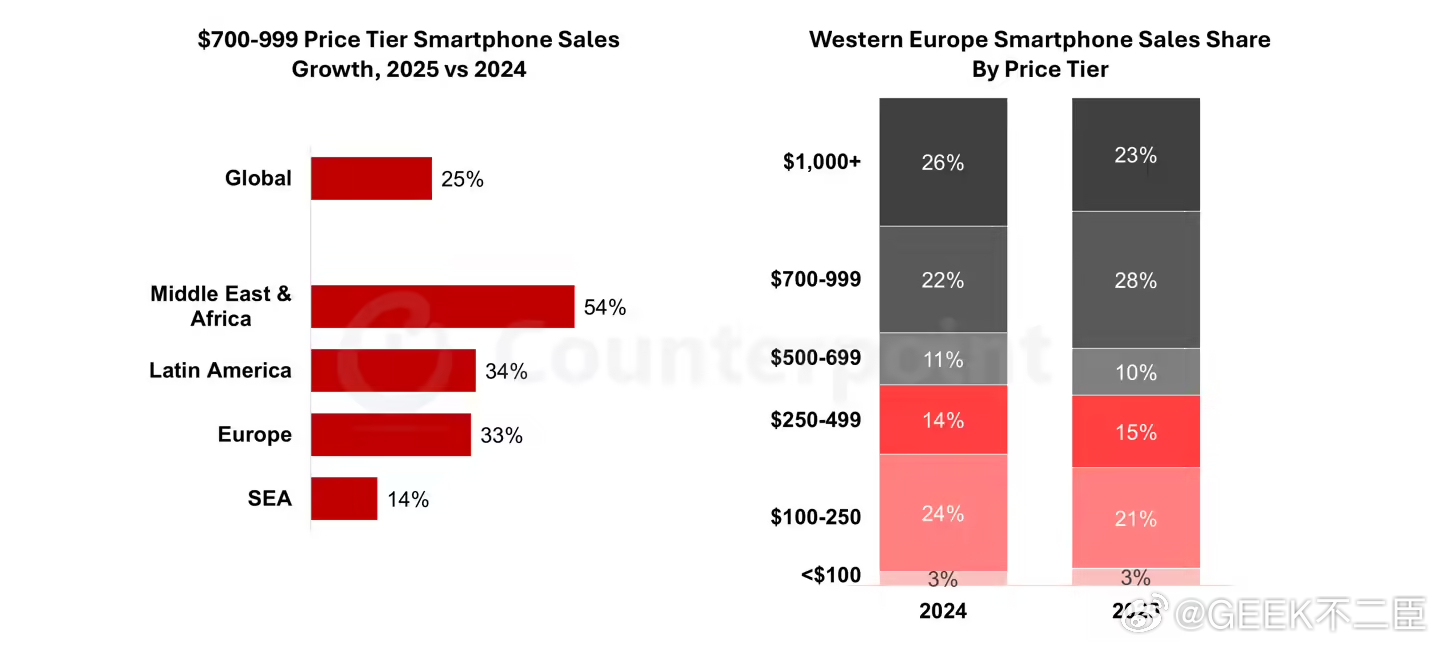 平价旗舰将成2026年手机主战场Counterpoint Research 昨日表示,定价位于 700~999 美元(现汇率约合 4820 ~ 6879 元人民币)区间的“平价旗舰”将成为智能手机领域在 2026 年的主战场。