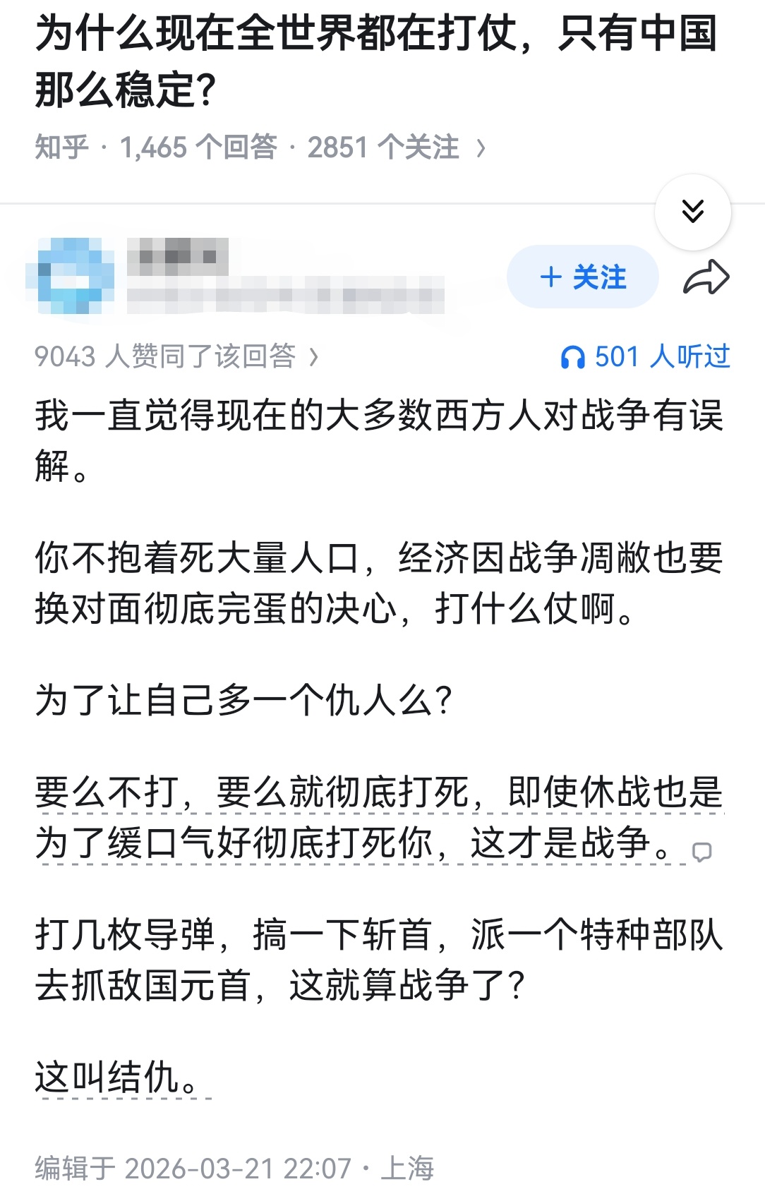 为什么现在全世界都在打仗,只有中国那么稳定?