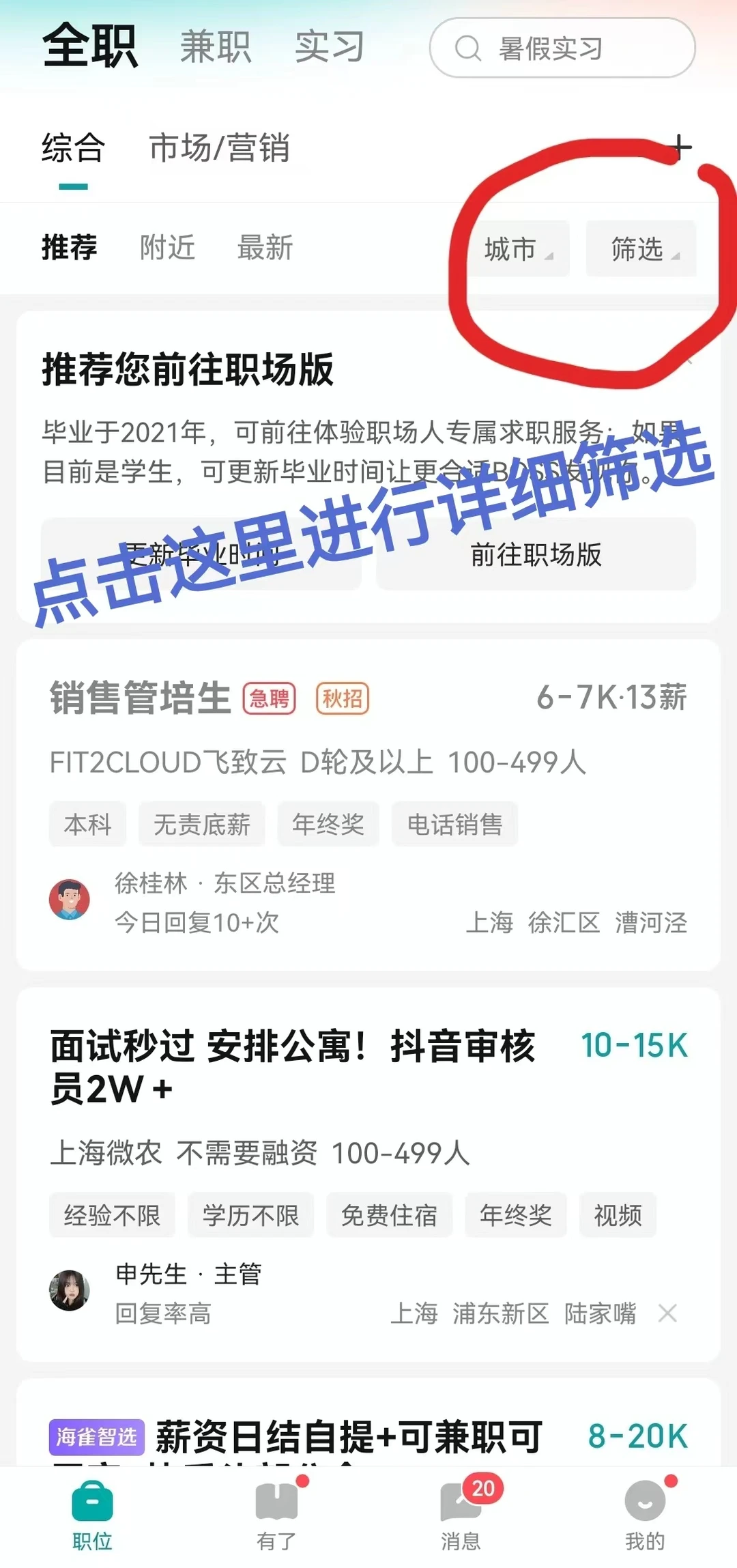 [向右R]一是“筛选”功能,在岗位搜索页设置“公司规模20-100人”,再搭配行业、薪资等条件,能快速锁定目标小公司,避免在海量岗位里浪费时间;