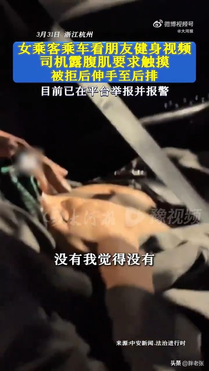女子深夜乘坐网约车遭司机摸腿骚扰! 近日,杭州一名女子在深夜乘坐网约车时遭遇了司机性骚扰。 女子称当时正在手机上观看健身视频,司机主动搭话并要求观看,看完后,就向女子主动展示自己的腹肌,并要求女子触摸,遭拒后,司机又伸手触摸女子的腿部和手部。 虽说起因可能是女乘客观看健身视频,勾起了司机的淫心,可这并不是他性骚扰女乘客的借口!自己做出的事就是承担相应的后果! 还有就是在这奉献一句女同志们,深夜出行,如果是自己的话,尽量多穿点,尽量不要饮酒后独自出行,而且不要过多的跟男司机去调侃,人性禁不住考验!