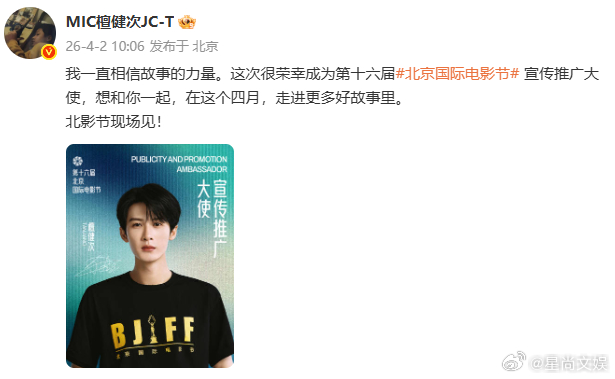 檀健次正式官宣北影节宣传推广大使、 檀健次第16届北影节宣传推广大使檀健次正式官宣北影节宣传推广大使檀健次第 16 届北影节宣传推广大使,从荧幕到盛会,始终保持对电影的赤诚!