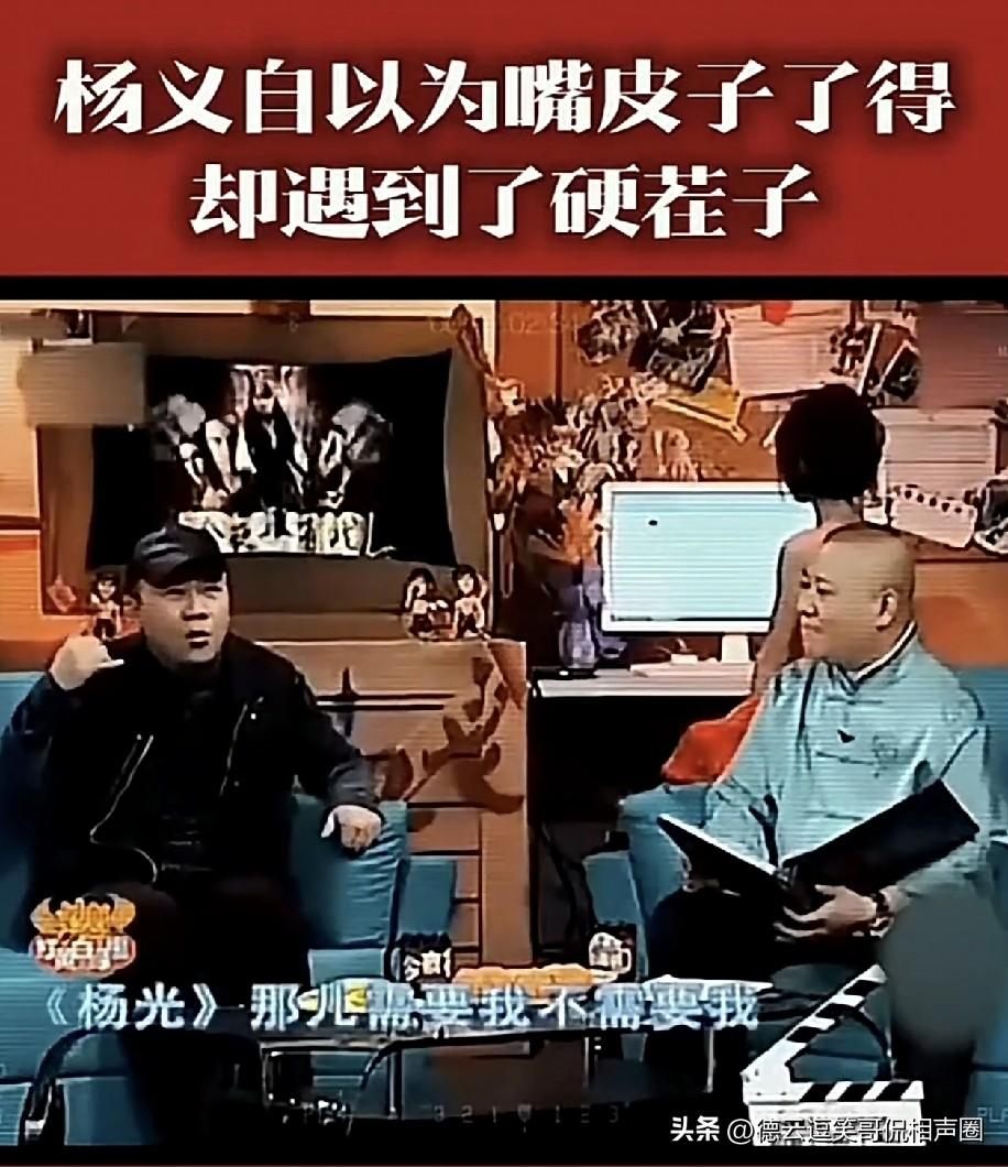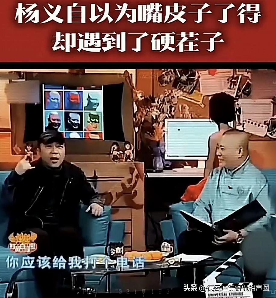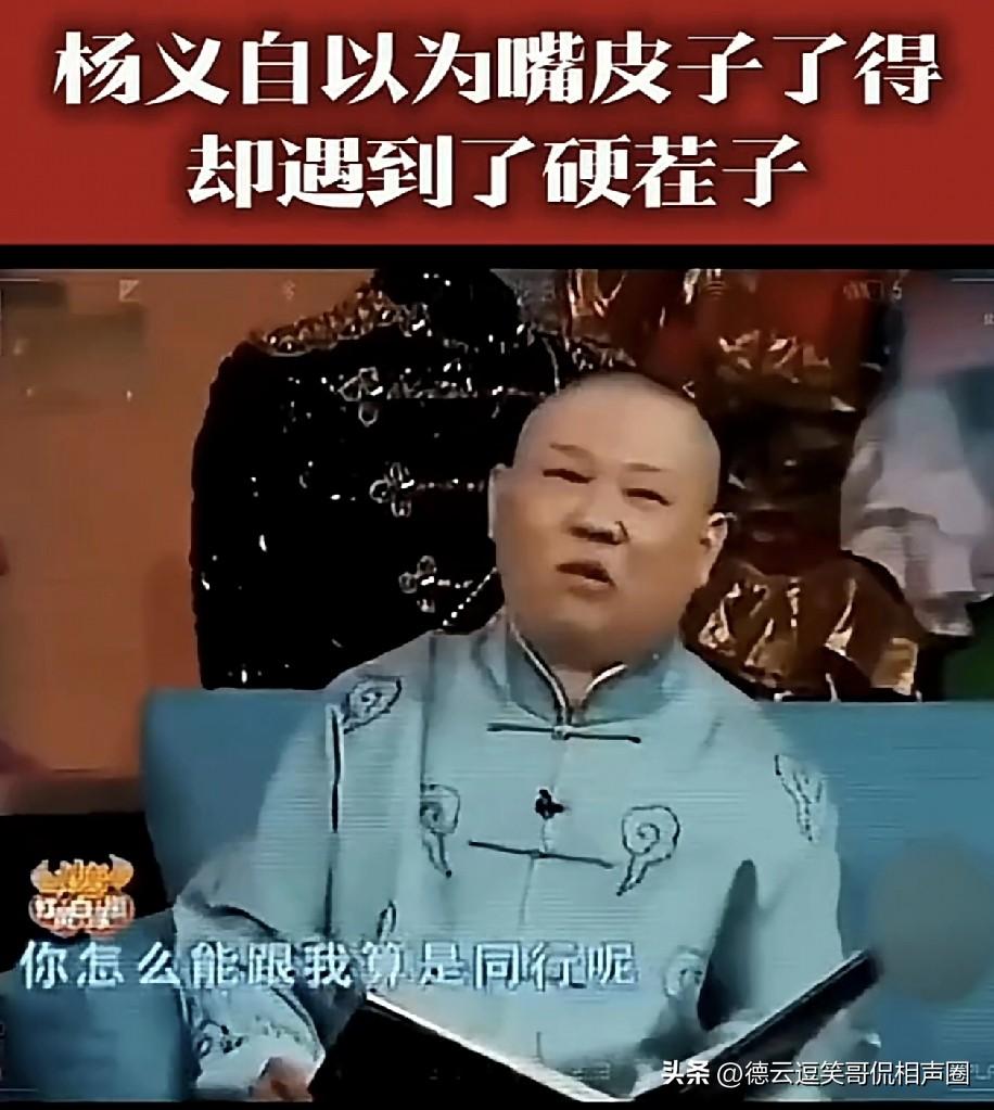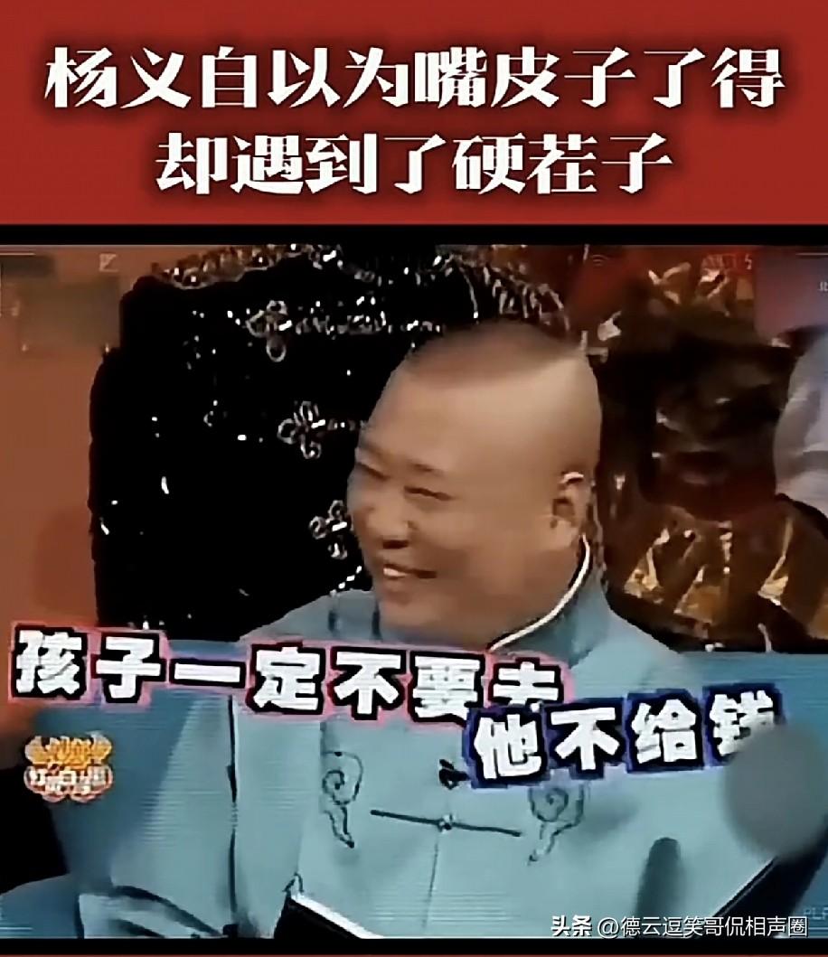 当年节目里,杨毅指责郭德纲:“我作为你的长辈,拍电视剧时,你居然都不主动打个电话问问五叔,大侄儿要不要过去帮忙,太没礼貌了。” 郭德纲尴尬一下将计就计回了句:“五叔的事我必须慎重对待,跟我师父也就是您三哥请示之后,我师父说:“千万别去你五叔那儿拍电视,累死累活,他肯定一分钱都不会给你,让你白干,还说咱们过得着,到时候你就傻眼了。”