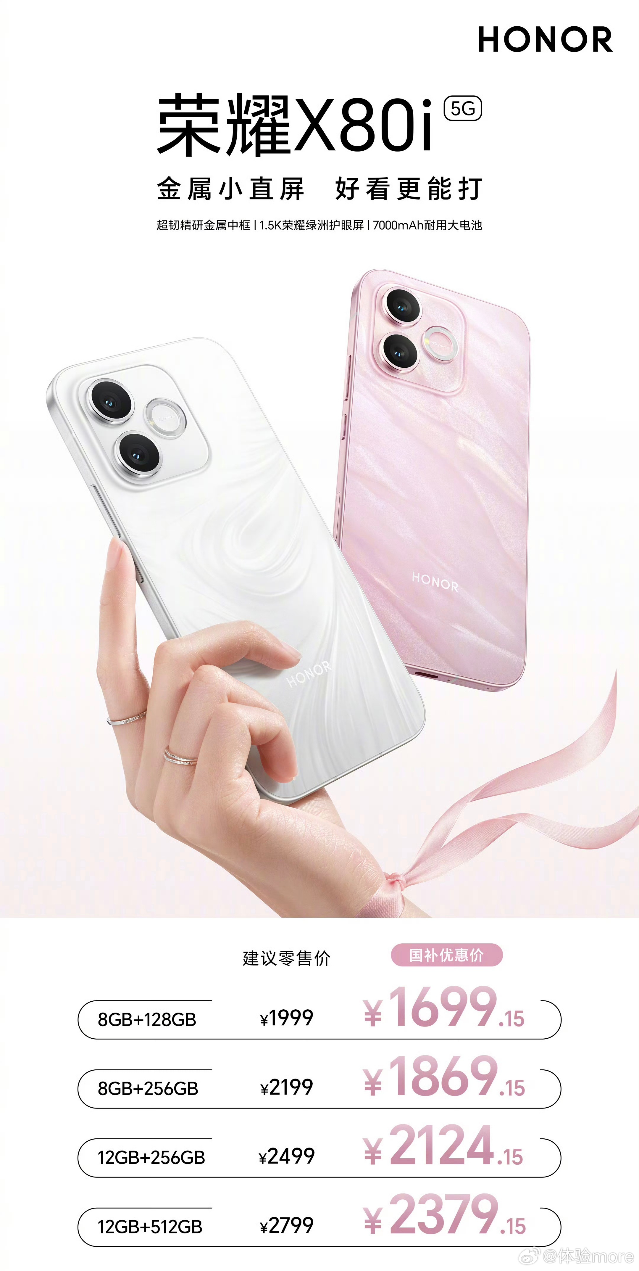 荣耀X80i开启预售:8+128,19998+256,219912+256,249912+512,2799