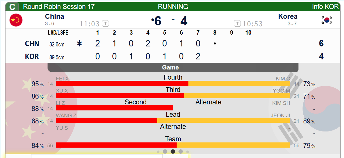 冰壶 【中国-韩国】第八局最后阶段清理占位unlucky,但还是通过double