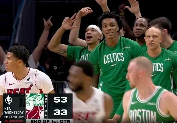 昨天骑士输给湖人,看到有些球迷说是故意的,我当时还有点嫌弃这种说法,但今天看了一会凯尔特人和热火的比赛,忽然就理解了为啥说尼克斯和骑士都不想当东部第三了,确实凯尔特人不好对付啊,如果季后赛遇上了,就算最后能过去也要退一层皮,消耗太大了…… 热火也是挺惨的,第一节都已经拿到33分了,居然还落后20分呢,真是没地说理了。凯尔特人这边下起了三分雨,单节就已经投进了11个三分,感觉每个人都很能投啊,属于是“防不胜防”了