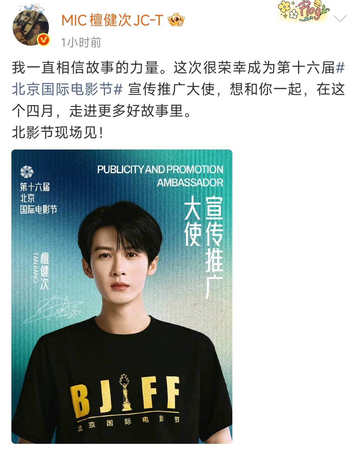 檀健次说相信故事的力量檀健次北影节宣传推广大使官宣就位!檀健次解锁第十六届北影节宣传推广大使新身份✨心怀热忱,相信故事的力量,赴光影之约,品人间百态。四月奔赴光影,静待少年与佳作相遇,北影节现场不见不散~