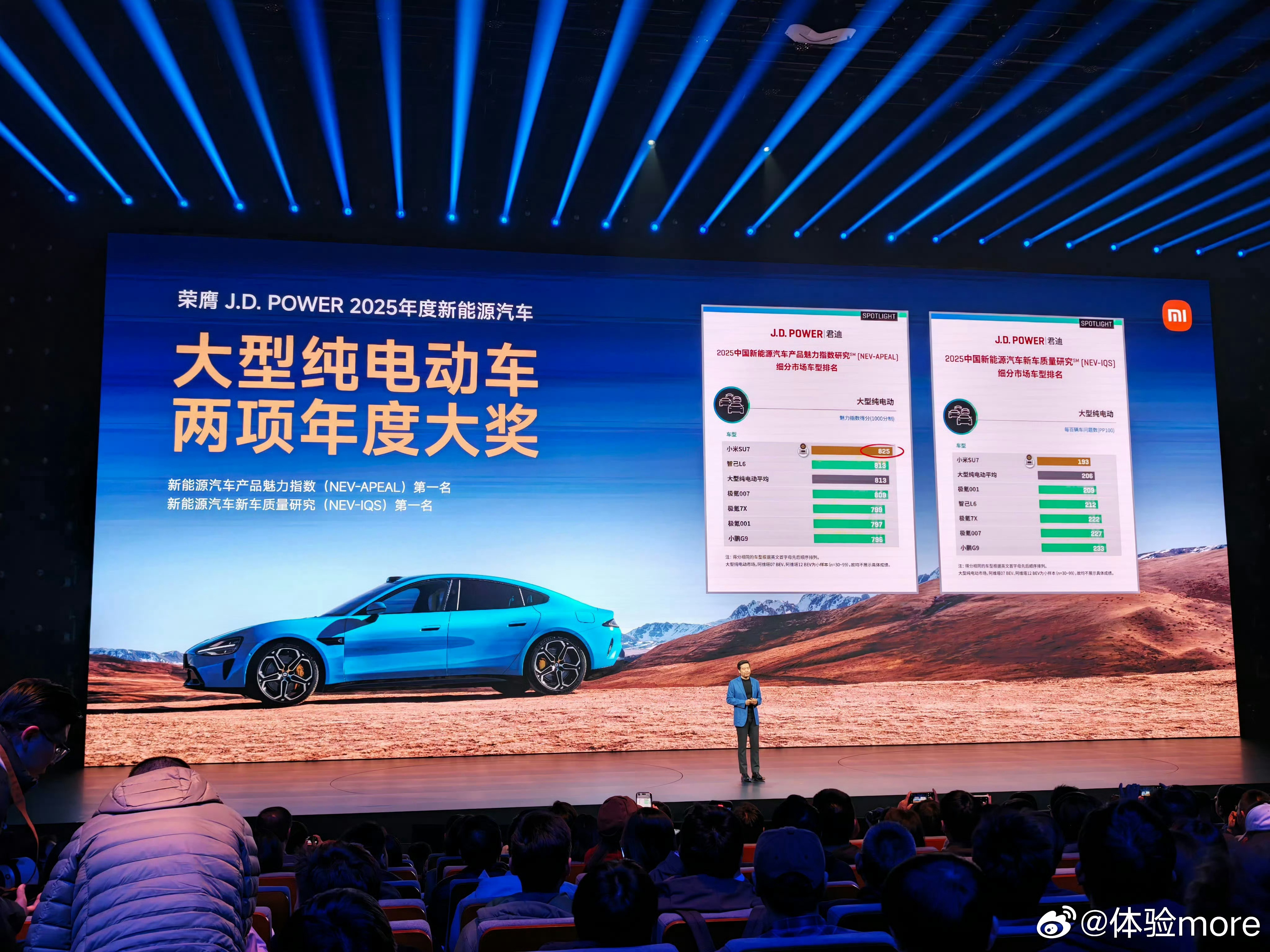 JDpower小米双车双榜第一小米SU7这是卫冕了,SU7是J.D. Power 2025年度新能源汽车新车质量研究第一名,2026年还是全部车型第一名;小米YU7是2026年大型纯电动SUV第一名,看了一下也是榜单里SUV第一名。